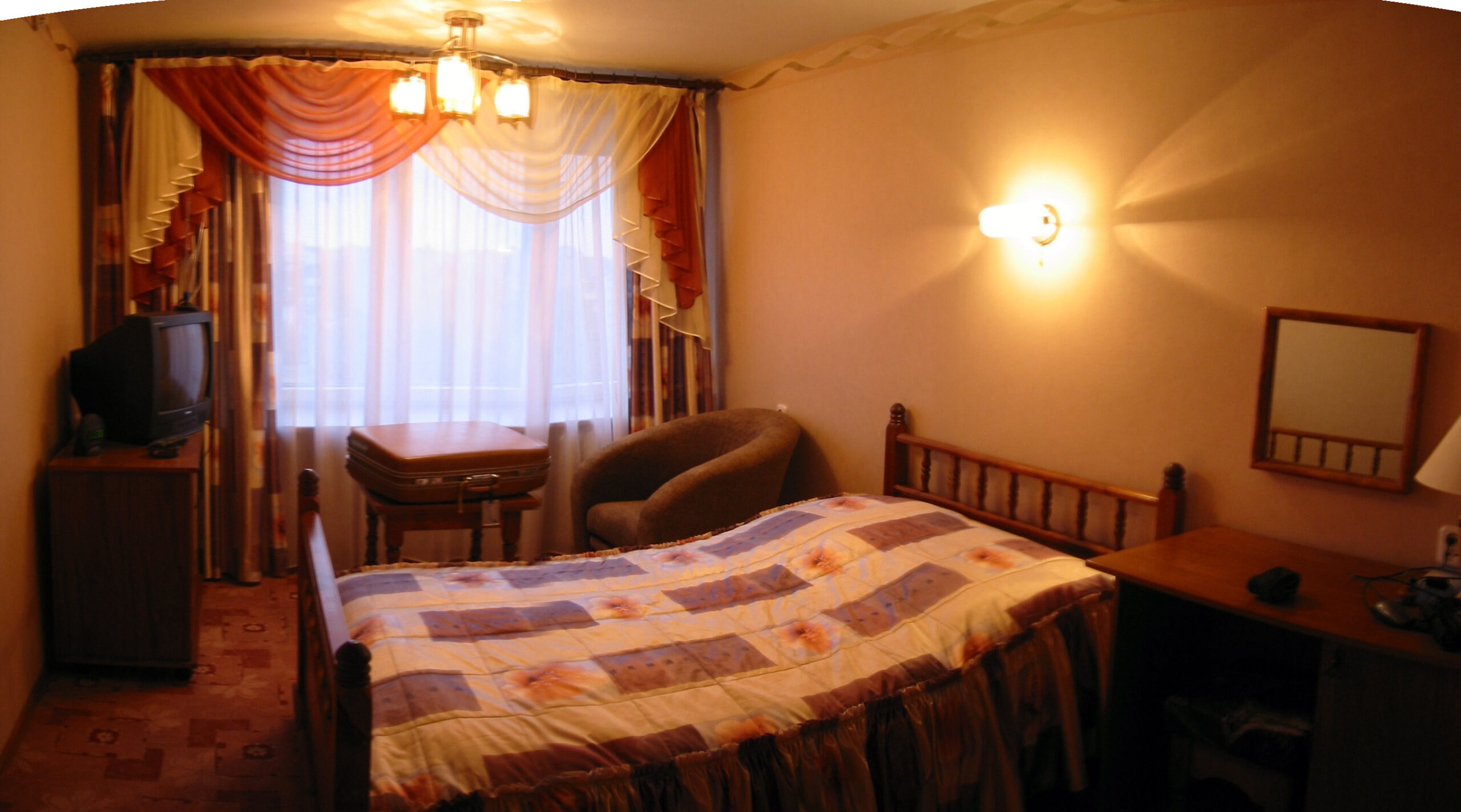 Untergebracht war ich im Tourismus-Komplex Rossija. Es gab dabei die unrenovierten Zimmer, und die renovierten im siebten Stock. So viel Russisch konnte ich schnell, um an der Rezeption ein Zimmer im 7. zu fordern: