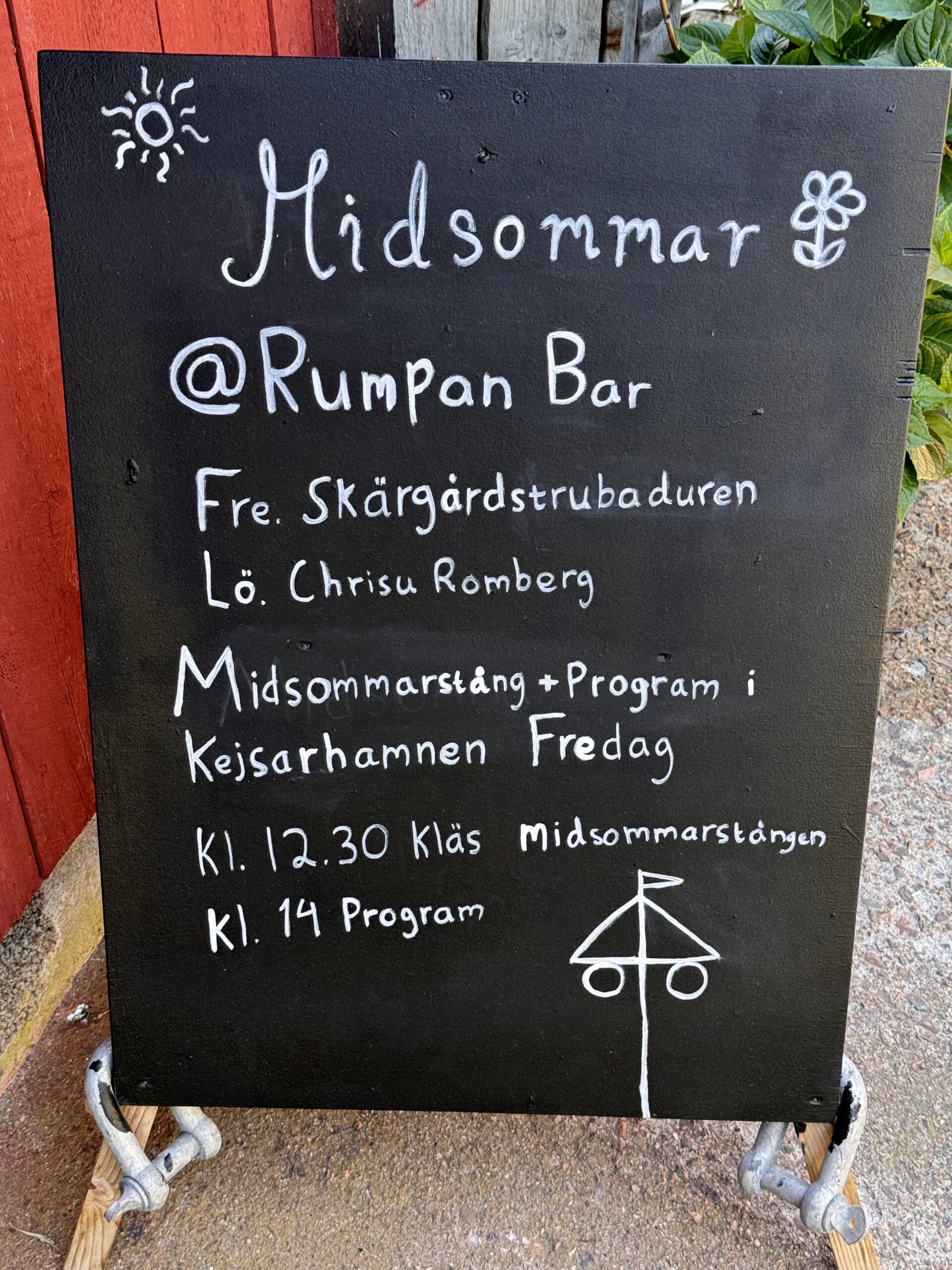 Es ist alles deutlich voller als die Tage zuvor, aber es ist auch Freitag. Die ‚Rumpan Bar‘ in unserem Hafen ist nach dem Essen gut gefüllt, einige der Leute haben ordentlich getankt. Ein Alleinunterhalten spielt Covers von beliebten schwedischen Pop-Songs. Wir unterhalten uns mit einer angetrunkenen Finn-Schwedin, und fragen sie über das Verhältnis der beiden Volksgruppen aus. Sichtlich um Neutralität bemüht, blitzt doch manchmal eher durch, dass man sich nicht gaaaaanz grün ist. Ich hatte erwartet, dass an diesem längsten Tag durch die kurze Nacht durchgefeiert wird, aber um 22:00 wird die letzte Runde eingeläutet. Nun ja – immerhin sehr viel besser als vor zehn Jahren in Westschweden.