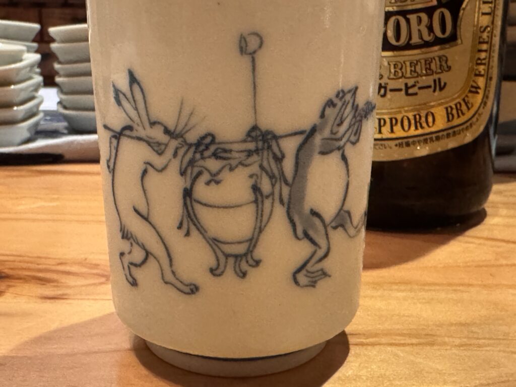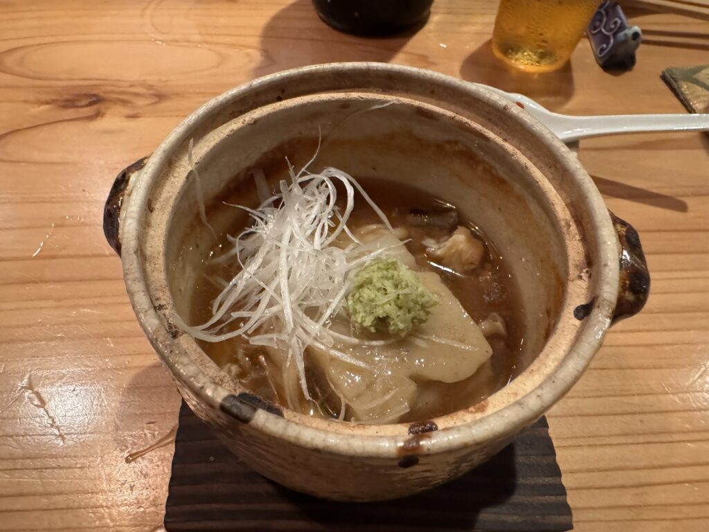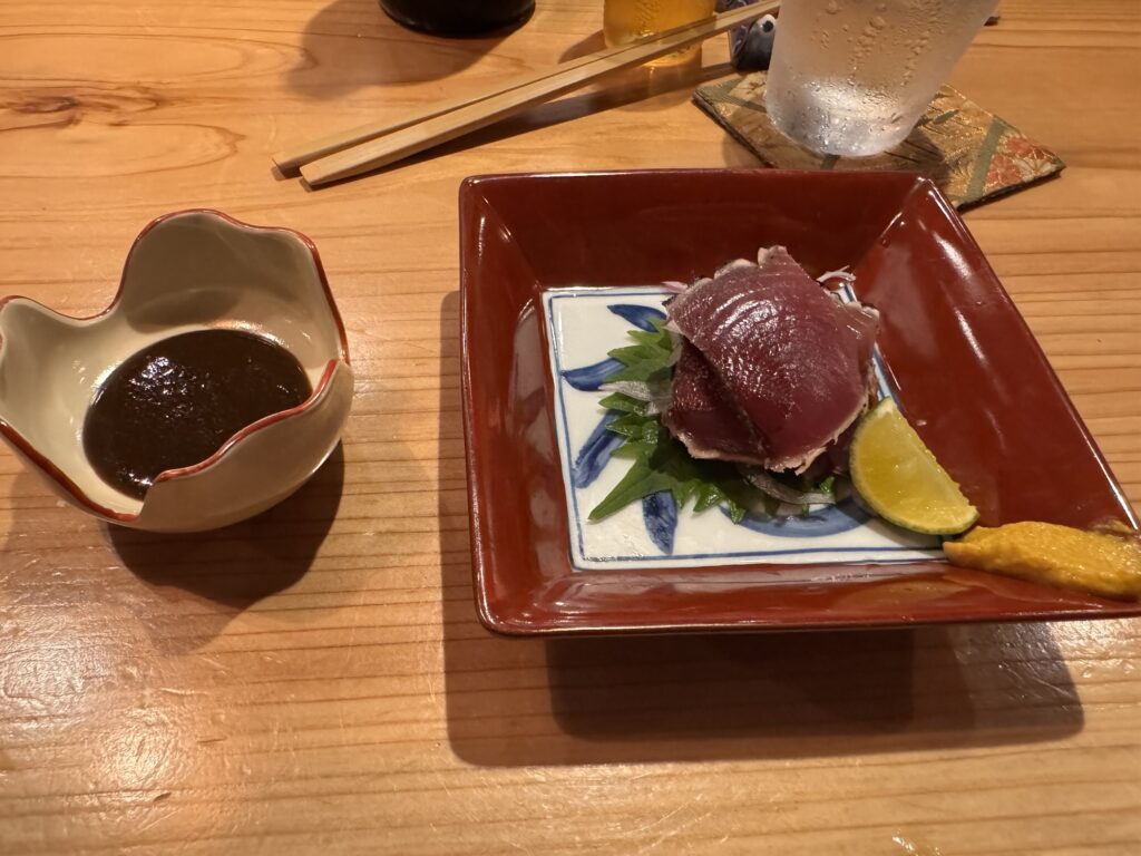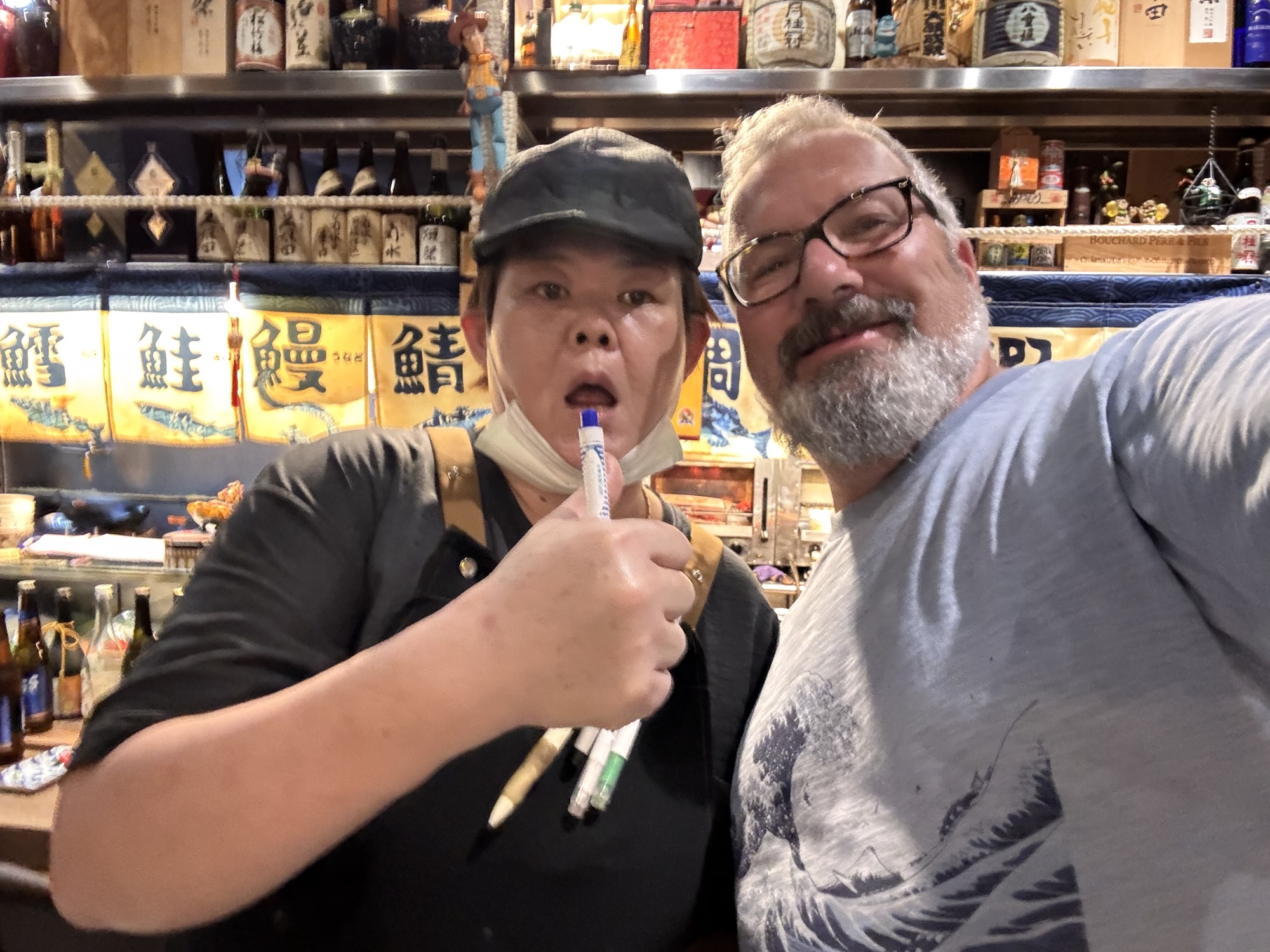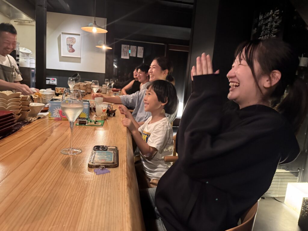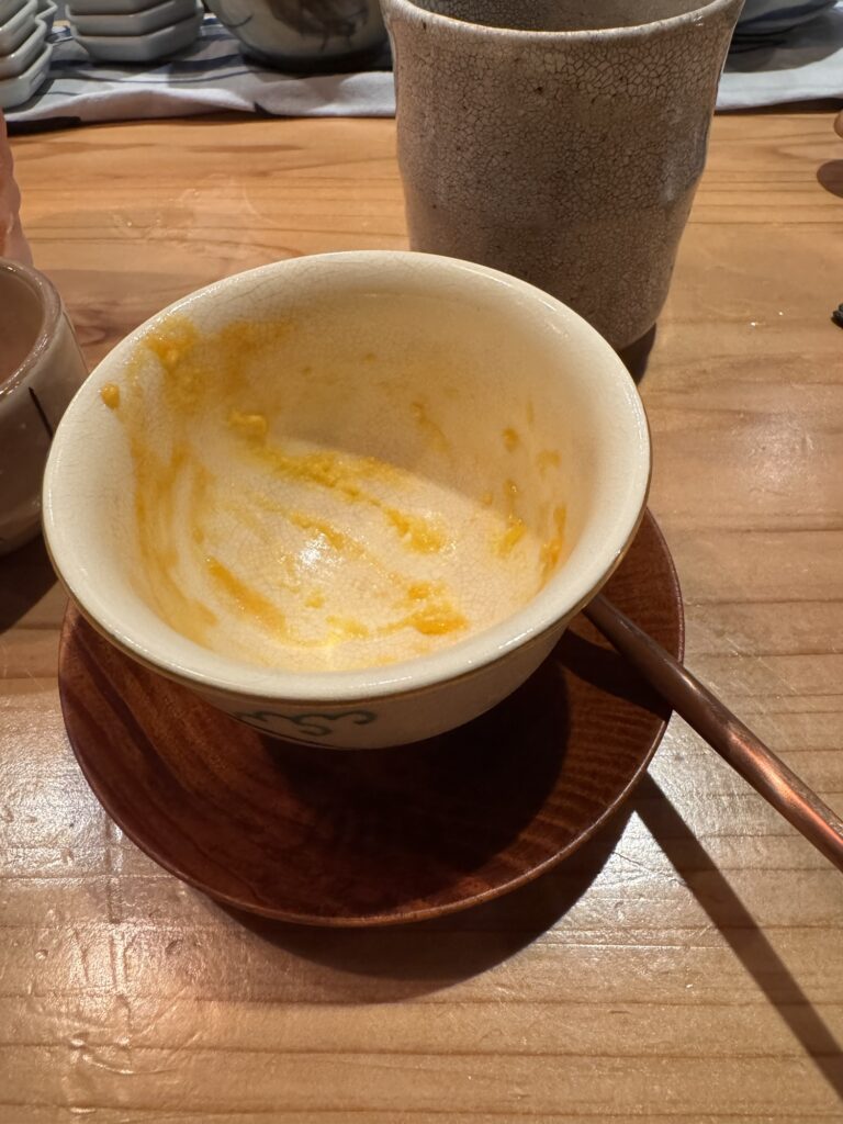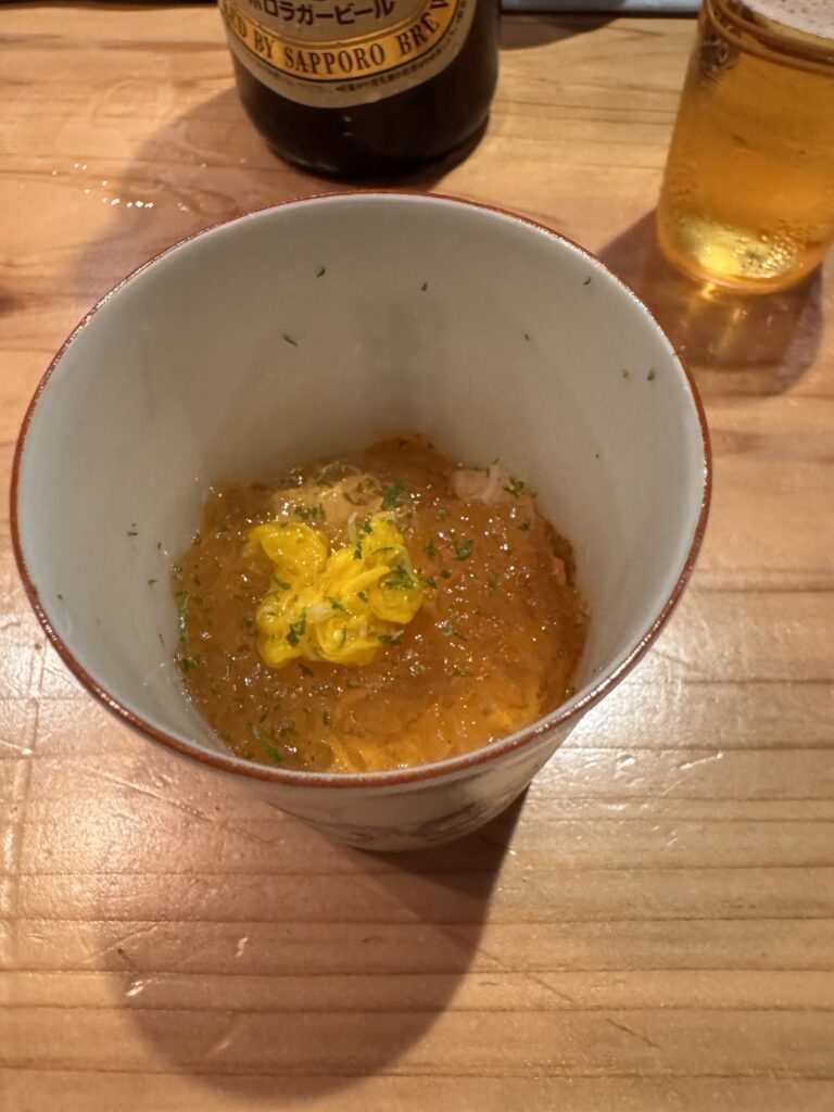 Auf Empfehlung von Bine und Ebi habe ich an meinem letzten Abend in Japan im Kuzushi Kotowari reserviert. Kaiseki-Style, also eine feine Menüfolge von erlesenen Speisen. Der Koch hat auch jeweils erklärt, was es war; ich konnte es mir nicht merken. Anfangs saß ich neben einem Paar aus Dänemark, die aber schon länger da waren als ich. Danach hat sich Mitsuki neben mir um meine Aufmerksamkeit bemüht. Scheinbar ein ‚Freund des Hauses‘, und es gesellten sich noch weitere dazu, einschließlich eines kleinen Jungen der auf der Theke angefangen hat, seine Lego zu bauen. Irgendwann war ich die letzte Langnase, und der Rest hat mit dem Koch Geburtstag gefeiert. Das wurde dann noch richtig lustig.