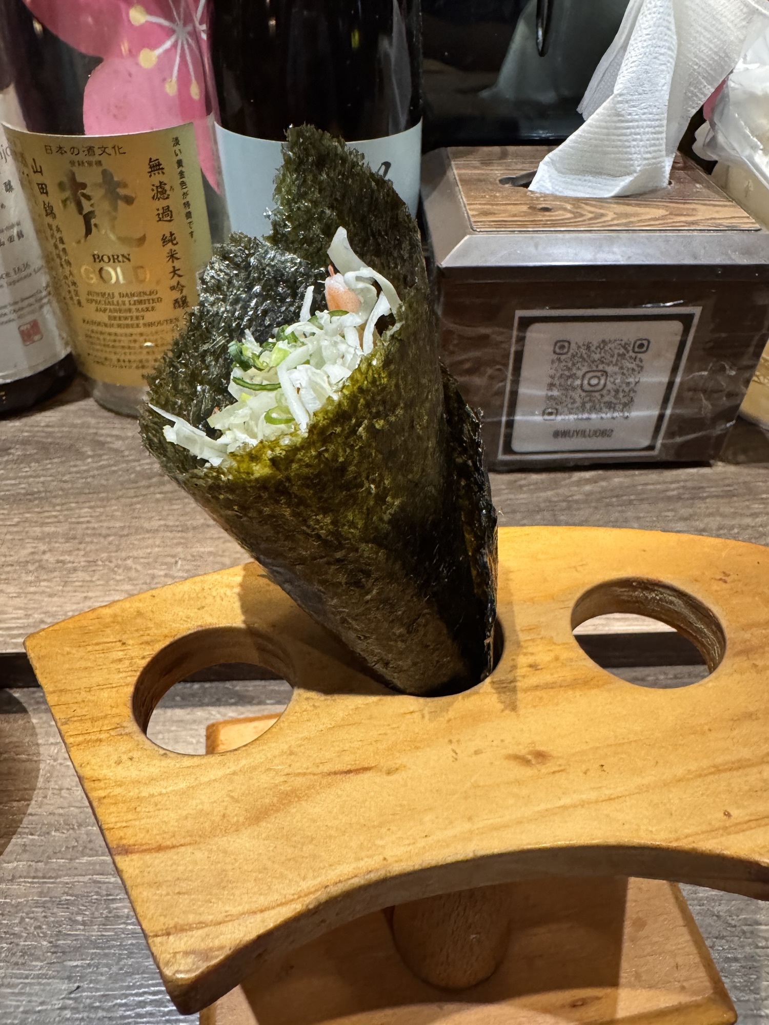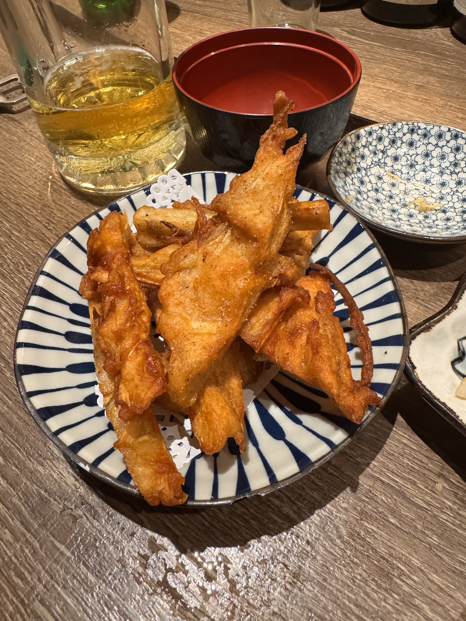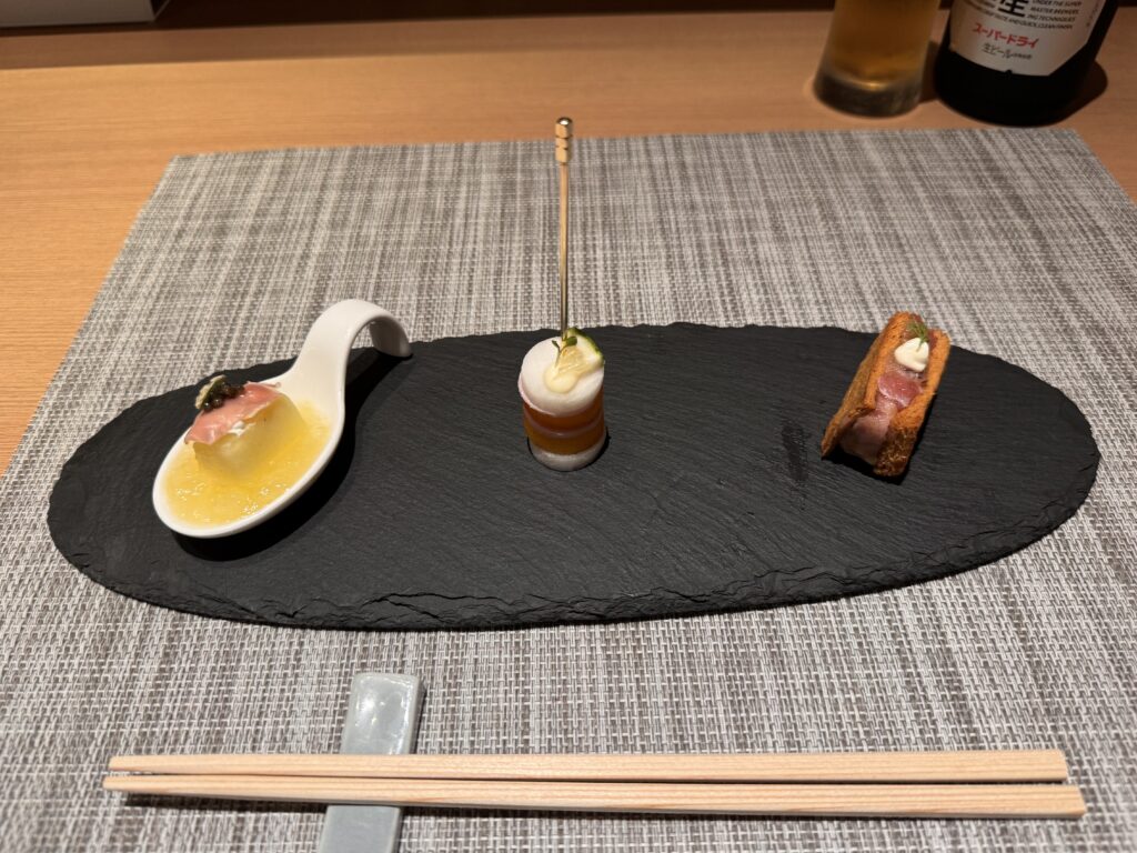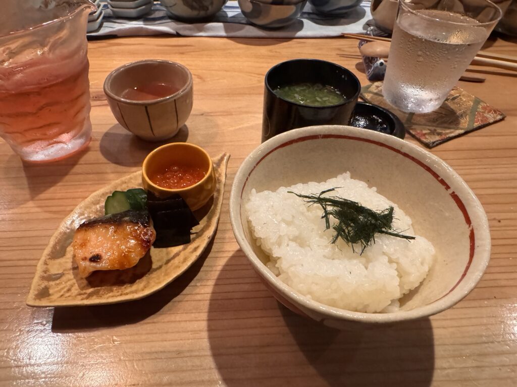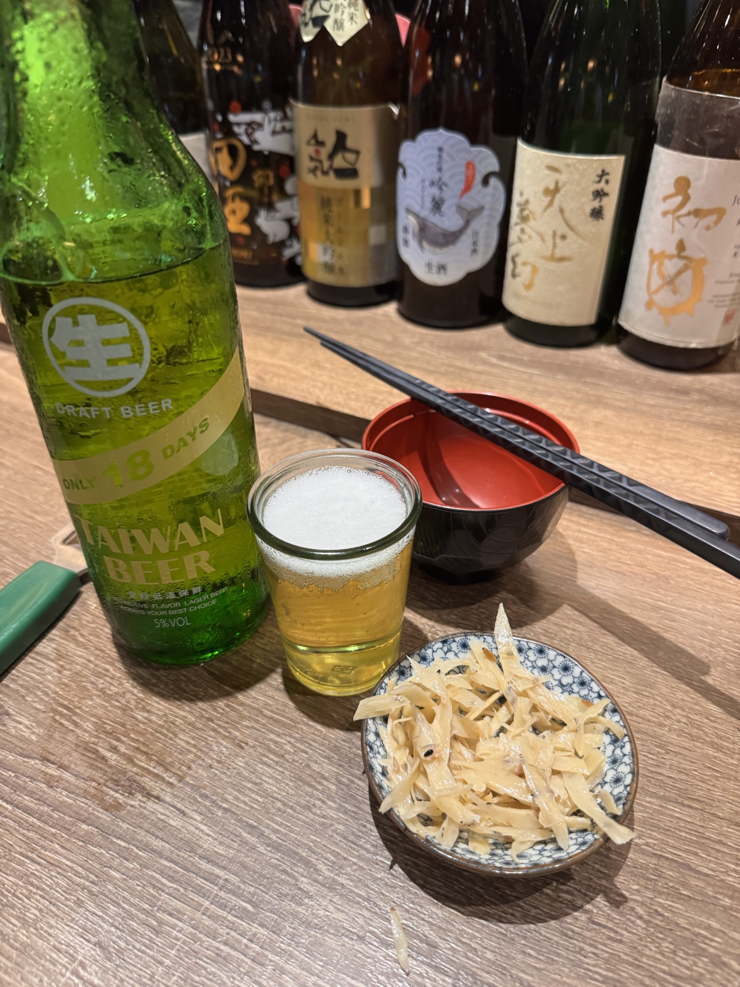 Auf Empfehlung von Bine und Ebi habe ich an meinem letzten Abend in Japan im Kuzushi Kotowari reserviert. Kaiseki-Style, also eine feine Menüfolge von erlesenen Speisen. Der Koch hat auch jeweils erklärt, was es war; ich konnte es mir nicht merken. Anfangs saß ich neben einem Paar aus Dänemark, die aber schon länger da waren als ich. Danach hat sich Mitsuki neben mir um meine Aufmerksamkeit bemüht. Scheinbar ein ‚Freund des Hauses‘, und es gesellten sich noch weitere dazu, einschließlich eines kleinen Jungen der auf der Theke angefangen hat, seine Lego zu bauen. Irgendwann war ich die letzte Langnase, und der Rest hat mit dem Koch Geburtstag gefeiert. Das wurde dann noch richtig lustig.
