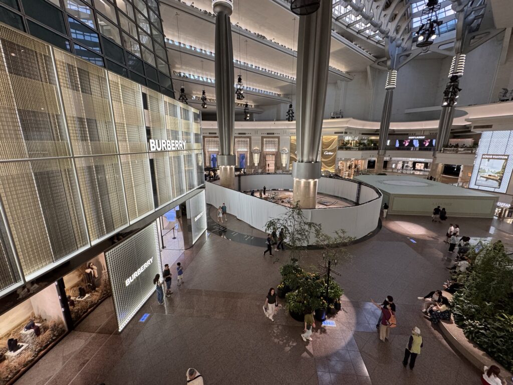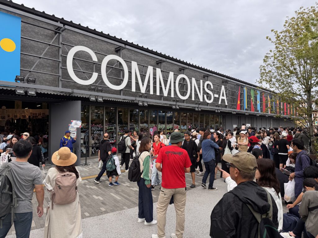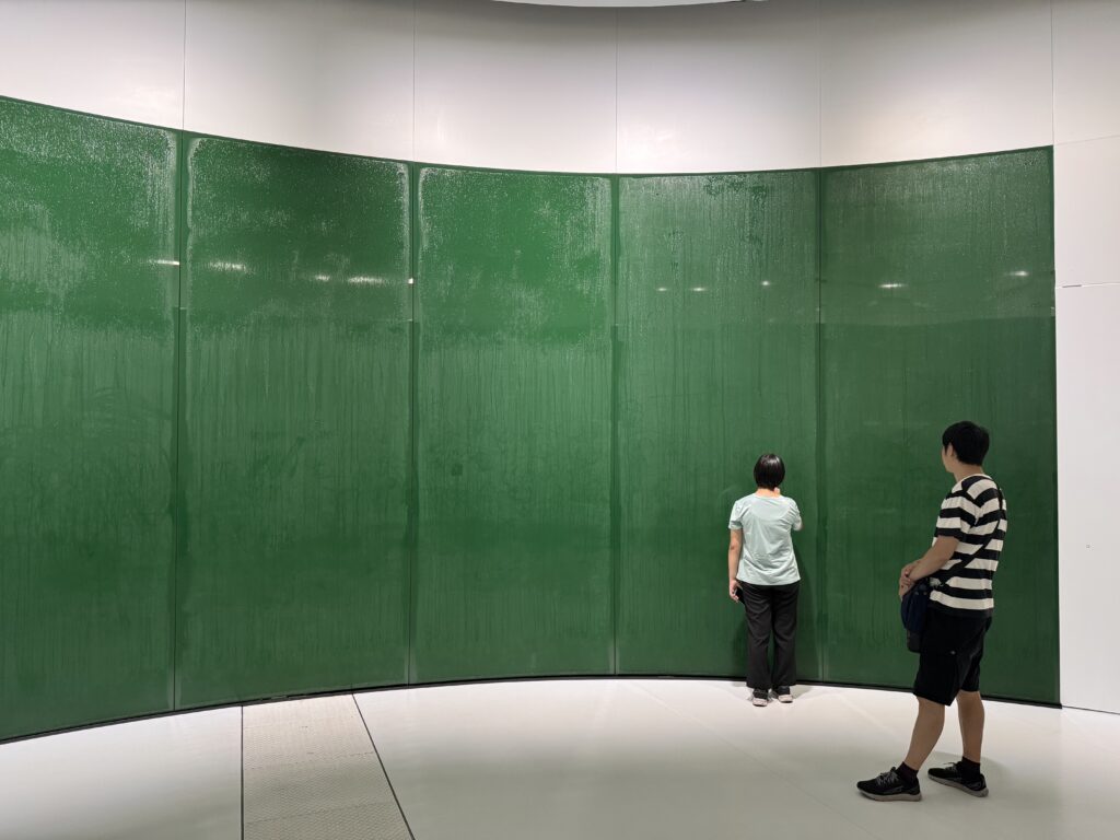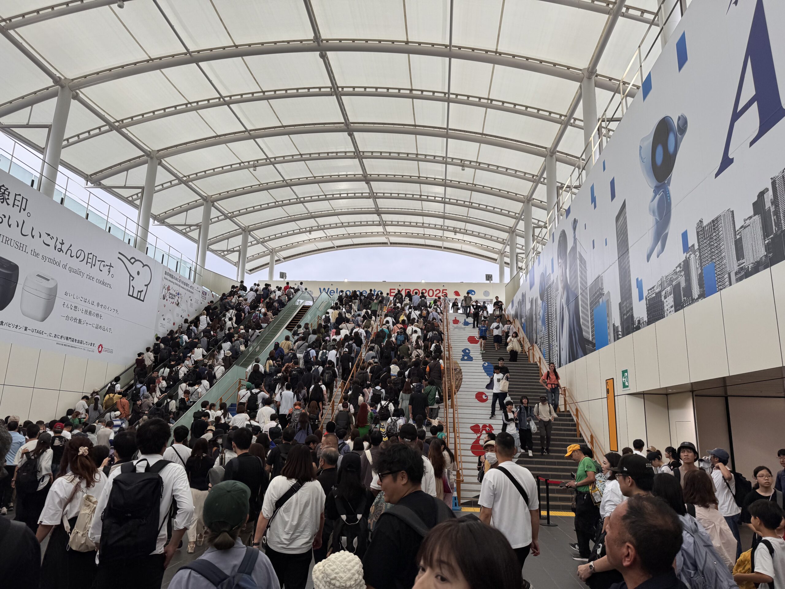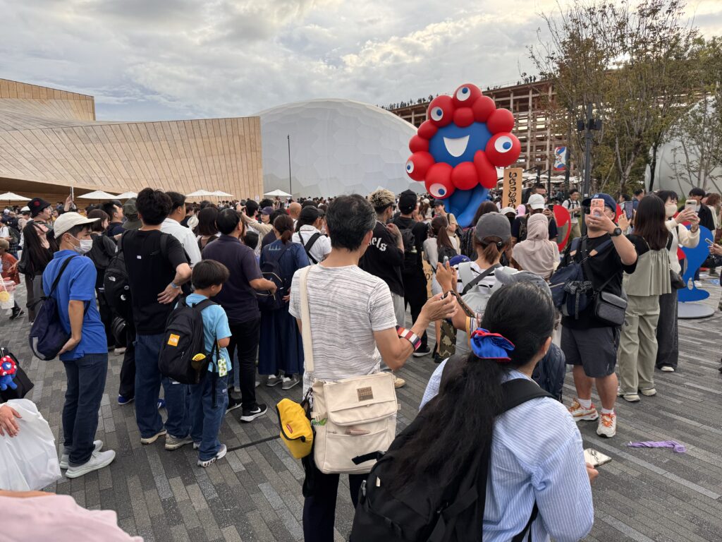 Ich habe es doch noch auf die Expo geschafft. Eine ‚Tour‘ mit Get-your-guide, hier ist Ihre Eintrittskarte, wir treffen uns dann im Innenraum – nicht. Danke Doro für den Tipp. Die Expo 2025 ist ein Moloch. Und wenn bei dem Titel an eine kleine Natter im Regenwald gedacht hat – nein. Regen und Ansteh-Schlangen werden meine Erinnerung der Expo beherrschen. Die Wettervorhersage war eher unstet, und kurz vor der Expo war der Bericht nur von weniger als ein Millimeter; ich entschied also keinen Schirm zu kaufen. Fehler. Man kommt mit der U-Bahn an der Station Yumeshima an. Daneben ist die World Expo East Gate. Auf meiner Karte steht aber West Gate. Es gibt einen Bus, statt 2 km läuft man dann nur noch 800m, im fröhlichen Schlangenlinien um die Crowd-Control-Wellenbrecher zu dem Pferch für „Reservation 11:00“. Es nieselt ein wenig. Insgesamt brauche ich vom Ausgang der U-Bahn bis auf das Gelände 45 Minuten, aber tatsächlich, um 11:00 bin ich drin. Menschenmassen. Der Zutritt zu den einzelnen Pavillons erfolgt entweder durch eine Verlosung (über die Kennung mit der ich KEIN Ticket bekommen habe), oder durch lange Schlangen bei den beliebteren Pavillons. Ziemlich am Anfang sehe ich einen „The Baltics – Latvia and Lithuania“, mit vertretbarer Schlange davor. Da es mir dort gut gefallen hat, und ich wissen möchte, warum in der Gruppe Estland fehlt, stelle ich mich 10 Minuten an, und betrete dann den Pavillon.