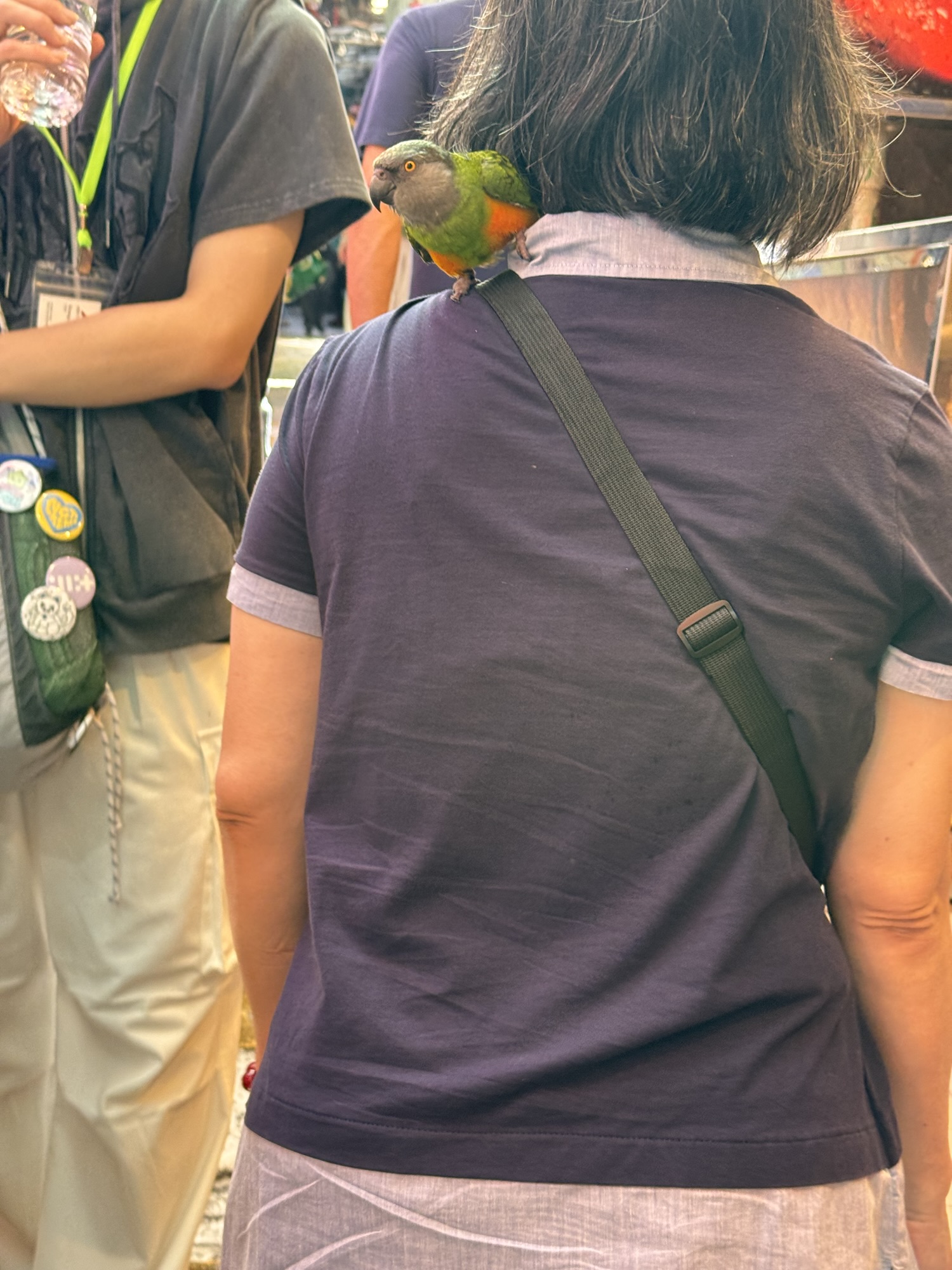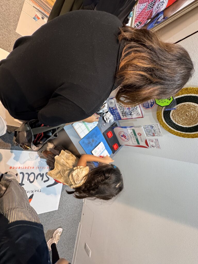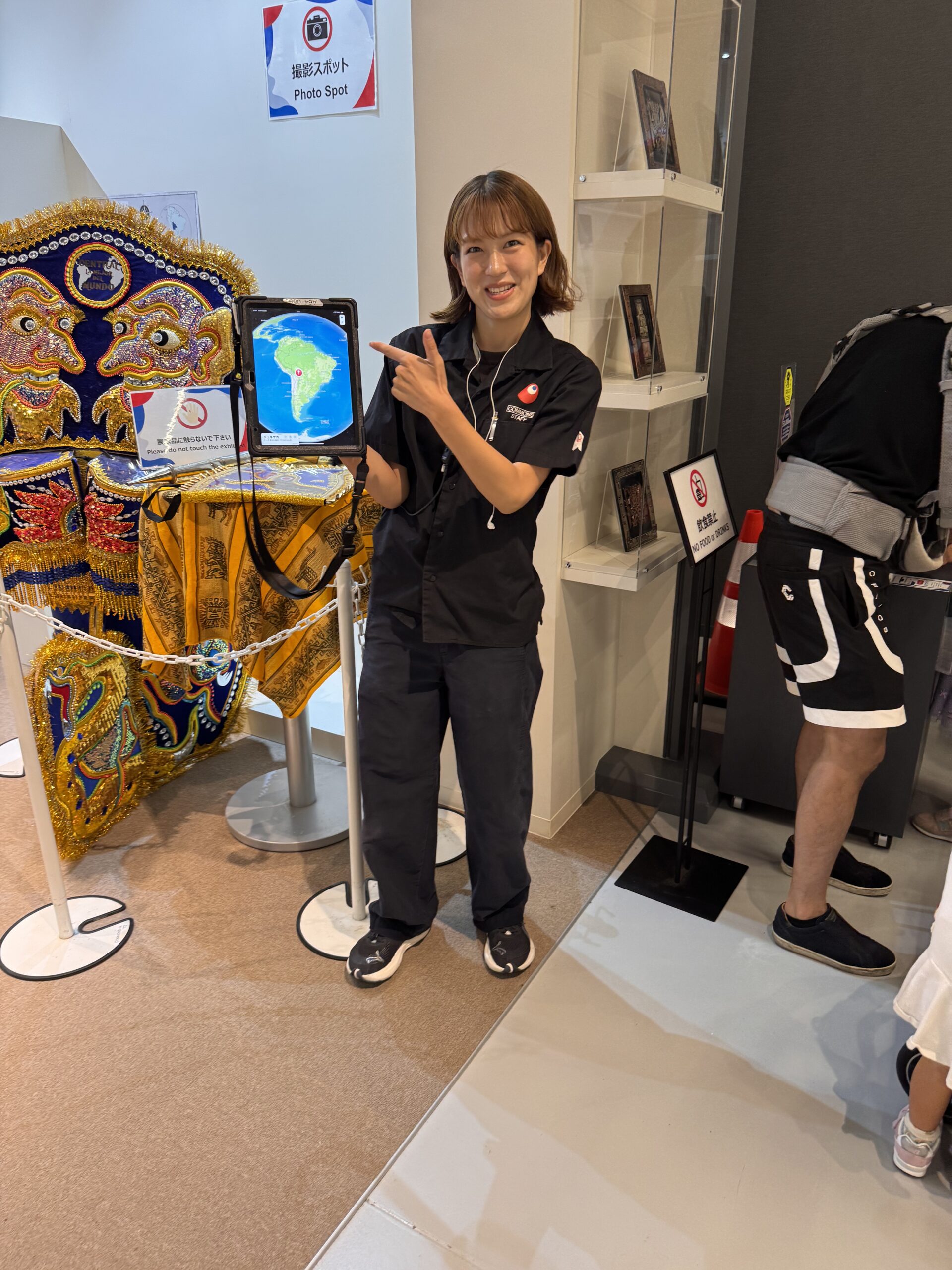 Ich komme noch in den Pavillon „Common A“ – ein Sammelsurium an verschiedenen Ländern, die sich keinen eigenen Pavillon leisten wollten. Ohne mir erkennbare Ordnung finden sich hier zB Yemen, Uganda, „The Kingdom of Eswatini“ (hättet Ihr’s gekannt?), Ghana, North Macedonia, Guinea Bissau, Kyrgyzstan, Grenada, Kenya, Comoros, Samoa, Suriname, Sri Lanka, Seychelles, Saint Kitts & Nevis, Bolivia, und…. Vielleicht stellen hier auch die Pinguine aus, auf deren Produkte Trump auch einen Zoll erhoben hat? Die Stände hier sind ähnlich. Ein paar kunsthandwerkliche Produkte, ein paar Bildschirme die wohl dazu animieren sollen, dort Urlaub zu machen, ein bissel Info über Nachhaltigkeit. Die Sinnfrage kommt mir wieder – Was ist das Zielpublikum, was ist der Zweck? Werden hier in Hinterzimmer Millionendeals zum Investment in Eswatini angebahnt? Soll mich das freundliche Bild des Königs von Eswatini dazu animieren, dort mal in Urlaub hinzufahren? (NB: Ich hatte noch nie von Eswatini gehört – hätte es als kleine Enklave in Südafrika geschätzt, wie zB Swasiland. Eben auf Wikipedia geschaut, bis 2018 WAR es Swasiland – vielleicht bleibt es mir genug in Erinnerung, dass ich da tatsächlich mal hinfahre) Die Pass-Stempler kommen in der Halle jedenfalls voll auf ihre Kosten.