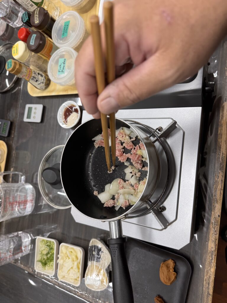 SchulungsraumRamen-BrüheMuster-GyozaChris-GyozaRamenDazu ein Matcha IPAder stolze Koch
