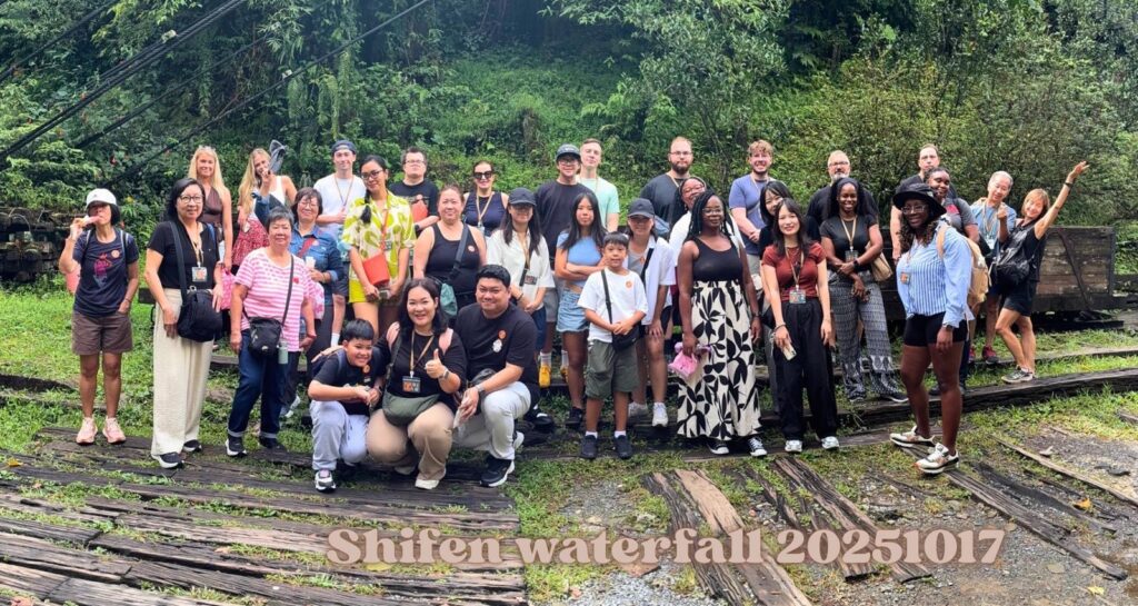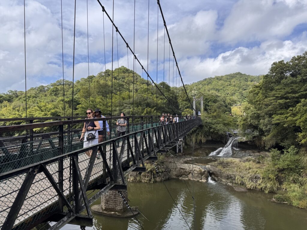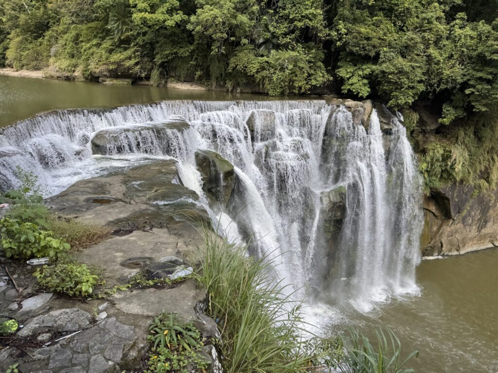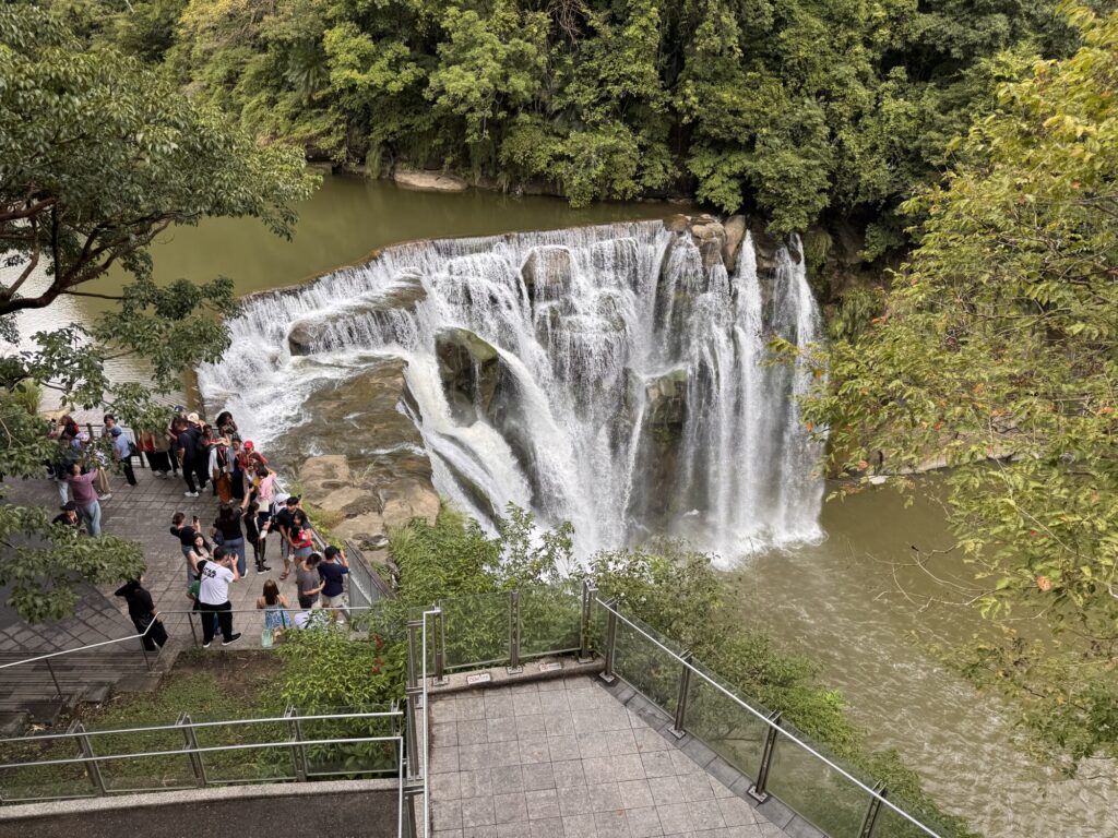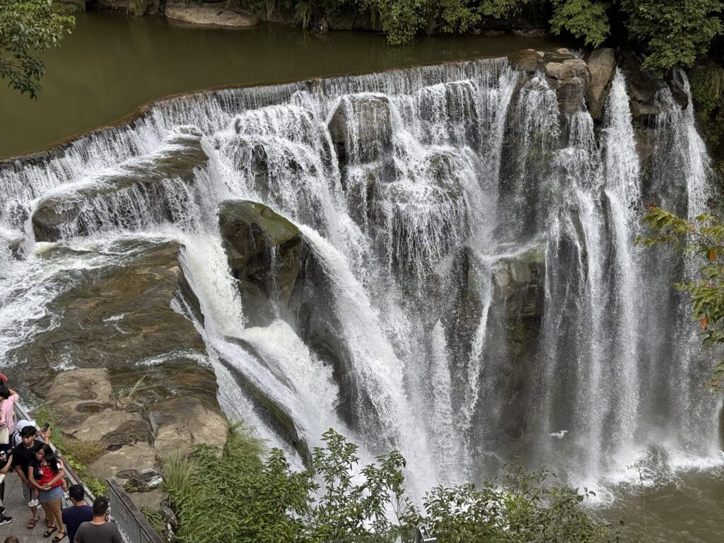 Die Tour ins Umland verspricht einen Wasserfall, zwei ‚old-towns‘ und ein Gebiet mit außerordentlichen geologischen Formationen; sie beginnt um 9:00 morgens, für mich also fast vor dem Aufstehen. Unsere Führerin ist eine nette, freundliche Taiwanesin mittleren Alters, die mir am Ende der Tour so auf den Sack gehen wird. Pauline hat gleich eine WhatsApp Gruppe erstellt, in der die wichtigsten Informationen teilt, die sie schon achtmal im Bus erklärt hat, besonders wichtig sind ihr die Treffpunkte und die Zeiten, sich dort einzufinden. Die Zeiten wiederholt sie im Bus oft, schreibt sie dann auf ein Täfelchen, welches sie allen Teilnehmern vor die Nase hält, danach schreibt sie die Zeit noch in die Gruppe und postet ein Bild davon. Vielleicht ist das Erfahrung, eine Teilnehmerin namens Sharon Ng stellt in der Gruppe auch immer wieder Fragen, die eigentlich erklärt wurden.