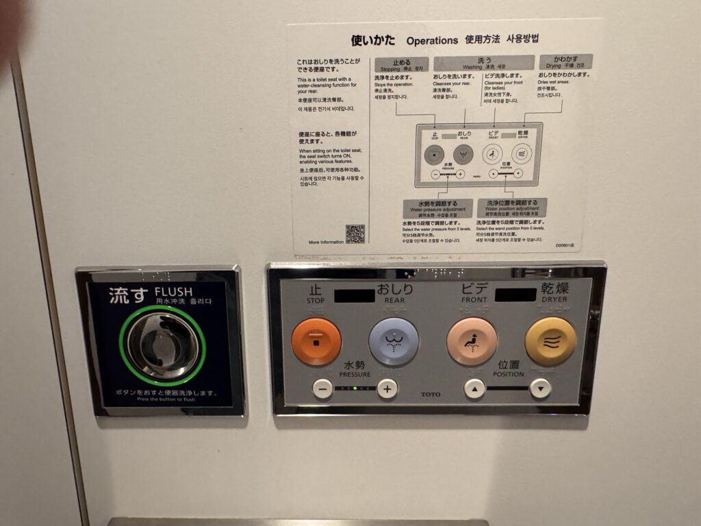 Verschwenderischer Luxus: Diese Toiletten: ständig beheizte Klobrille, und die aufwändige Waschfunktionen: wash rear / wasch front (women) mit einstellbarem Druck, einstellbarer Temperatur, Oszillation-Massage-Funktion. Der Spiegel im Bad ist in der Mitte beheizt; so bleibt selbst mit viel Duschdampf die Mitte beschlag-frei. Klar – er ist beheizt. Gerade in den Hotels wo ich war (ok, nicht die billigsten) gibt es jeglichen erdenklichen Schnickschnack, alles einzeln in Plastik verpackt – oder danach halt wieder gewaschen. Pantoffeln, Zahnbürste, usw…