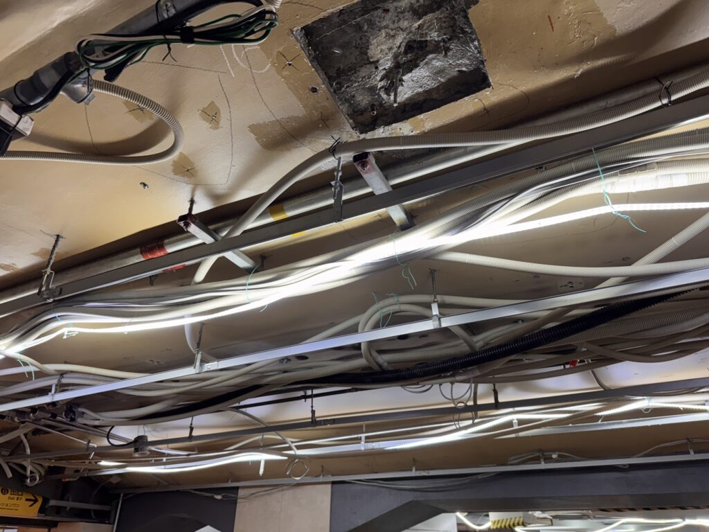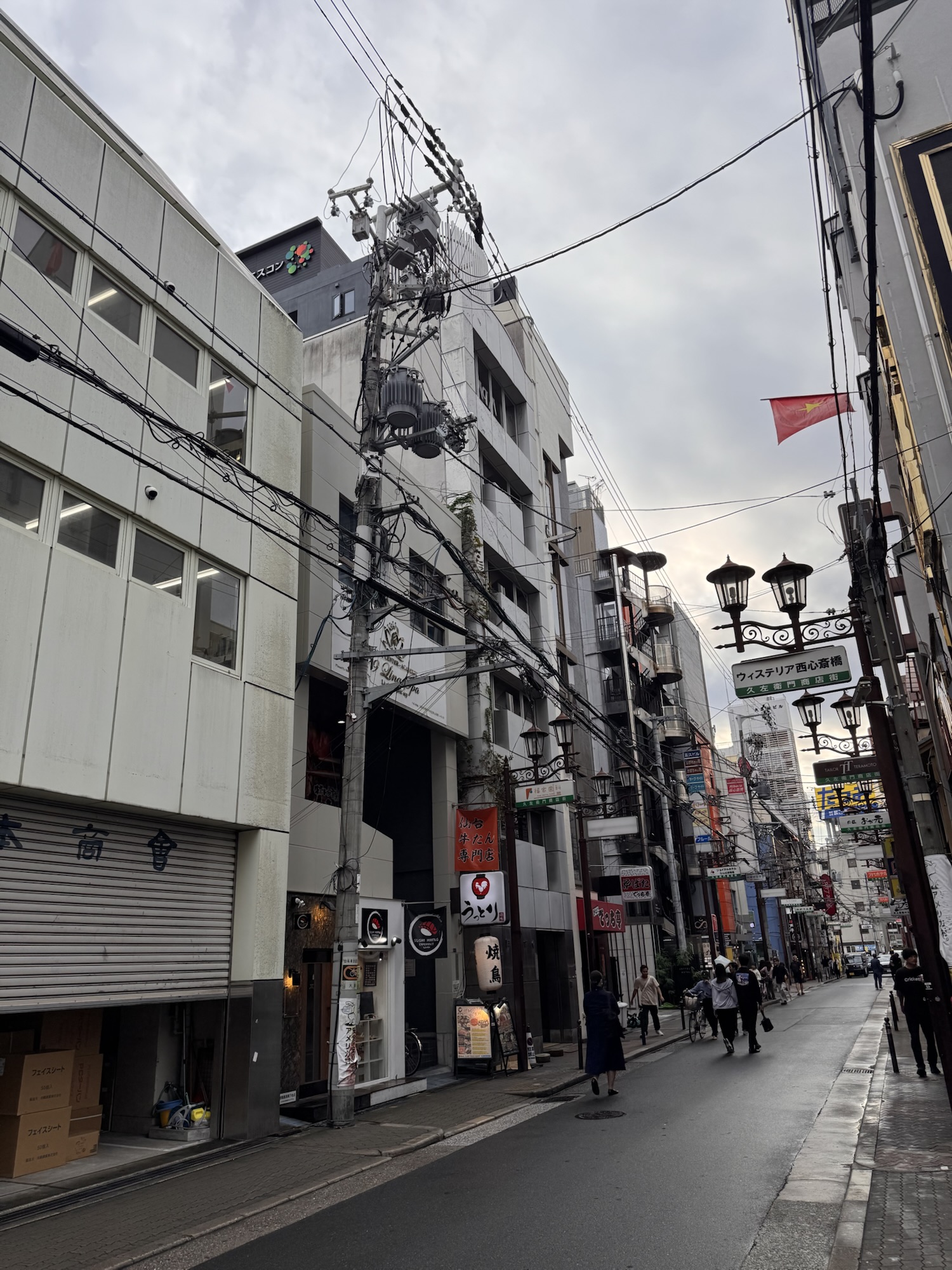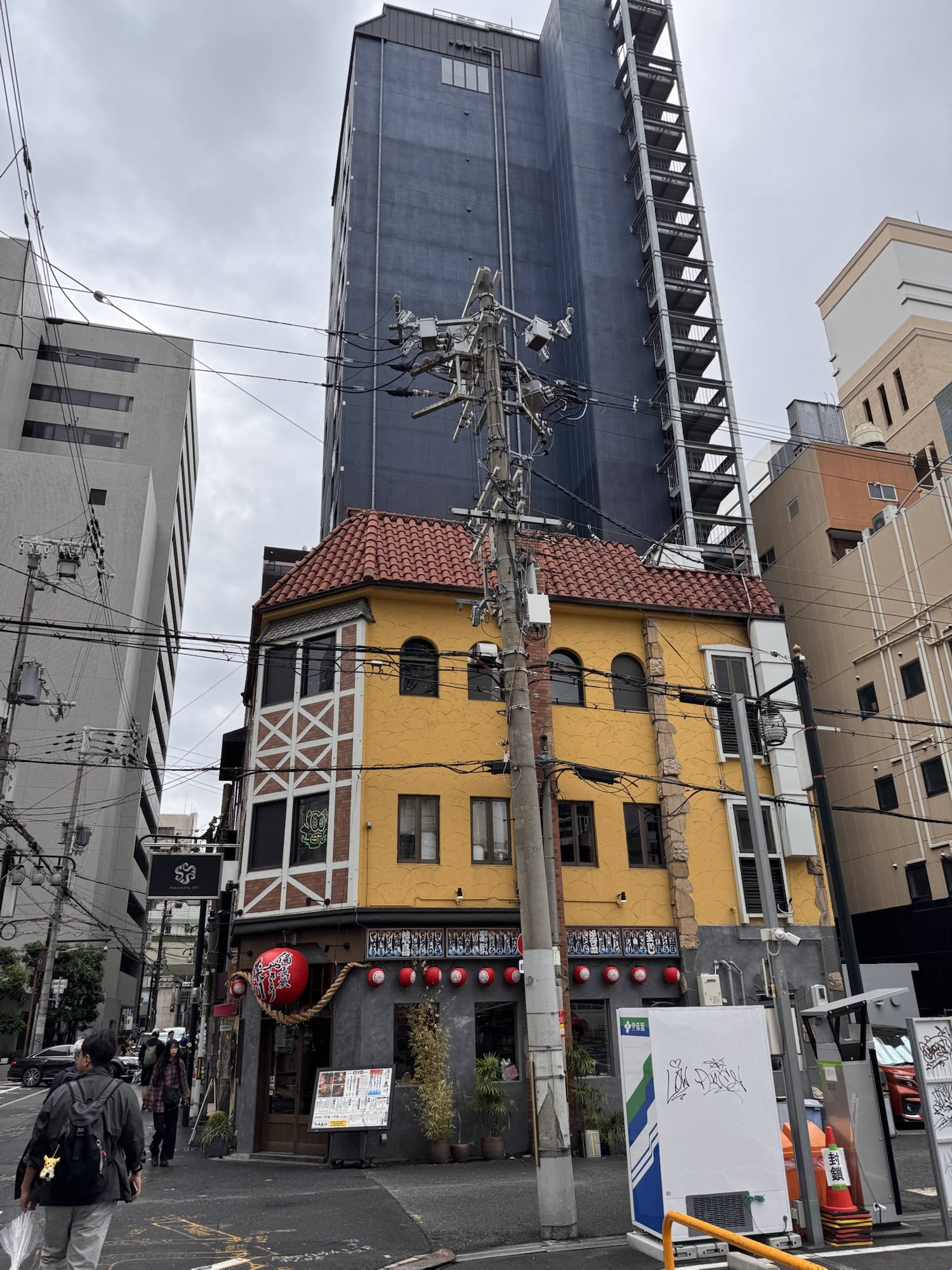 Diese Widersprüchlichkeit (Stadtbild): In vielen Bereichen machen die Japaner ein großes Aufheben wegen der Ästhetik. Gärten, mit der Nagelschere gepflegt. Menschliche Geräusche auf der Toilette von einem Rauschendem-Bach-Tonband übertönt. Dann geht man durch die Straßen und sieht ein hässliches, zusammengewürfeltes Stadtbild mit primitiver, offenliegener Installation. Elektrische Freileitungen für die Stromversorgung, wild an die Fassaden gedübelte Klimageräte, Gasinstallation und -zähler offen, oder gleich einzelne Gasflaschen neben der Tür, und alles offenverlegt. Als Ingenieur – ich würd‘ mich schämen.