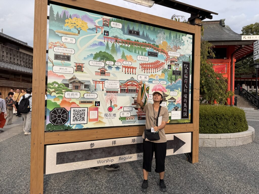Treffpunkt ist 7:50 am Bahnhof, an Tully’s Coffee. Ein Japaner läuft mit einer „Japan Panoramic Tours“ Fahne umher und betreut ca. 200 Touristen. Er verweist sie an mindestens sechs Tourguides ohne Fahne (noch), die dann den Namen auf einer Liste suchen, mir einen rosafarbenen Aufkleber geben, und mich in eine Schlange mit anderen Leuten stellen, die auch einen rosafarbenen Aufkleber haben. Um 8:00 ruft Den Ihre Schäfchen zu sich. Den heißt eigentlich länger, kommt aus Myanmar, kann eigentlich ganz gut Englisch, aber trotzdem ist sie über den Lautsprecher im Bus nicht besonders gut zu verstehen. Ab und zu wird noch eine sonore Frauenstimme vom Band eingespielt, die hätte ich auch als Audioguide auf Deutsch haben können. Den kündigt die nächste Sehenswürdigkeit jeweils an, erzählt etwas zur Geschichte, zeigt einen Lageplan mit Route, Treffpunkt, und Fallback-Szenario, legt dann eine späteste Uhrzeit für’s Treffen am Bus fest (auf einer Klapptafel angezeigt, dass man es nicht akustisch verstehen muss), und dann geht’s los. Die Sehenswürdigkeiten dann unten im Einzelnen, mit professioneller Erklärung für Interessierte und meinen Bildern für (daran) Interessierte. Wenn Euch beides Wurscht ist, well…
