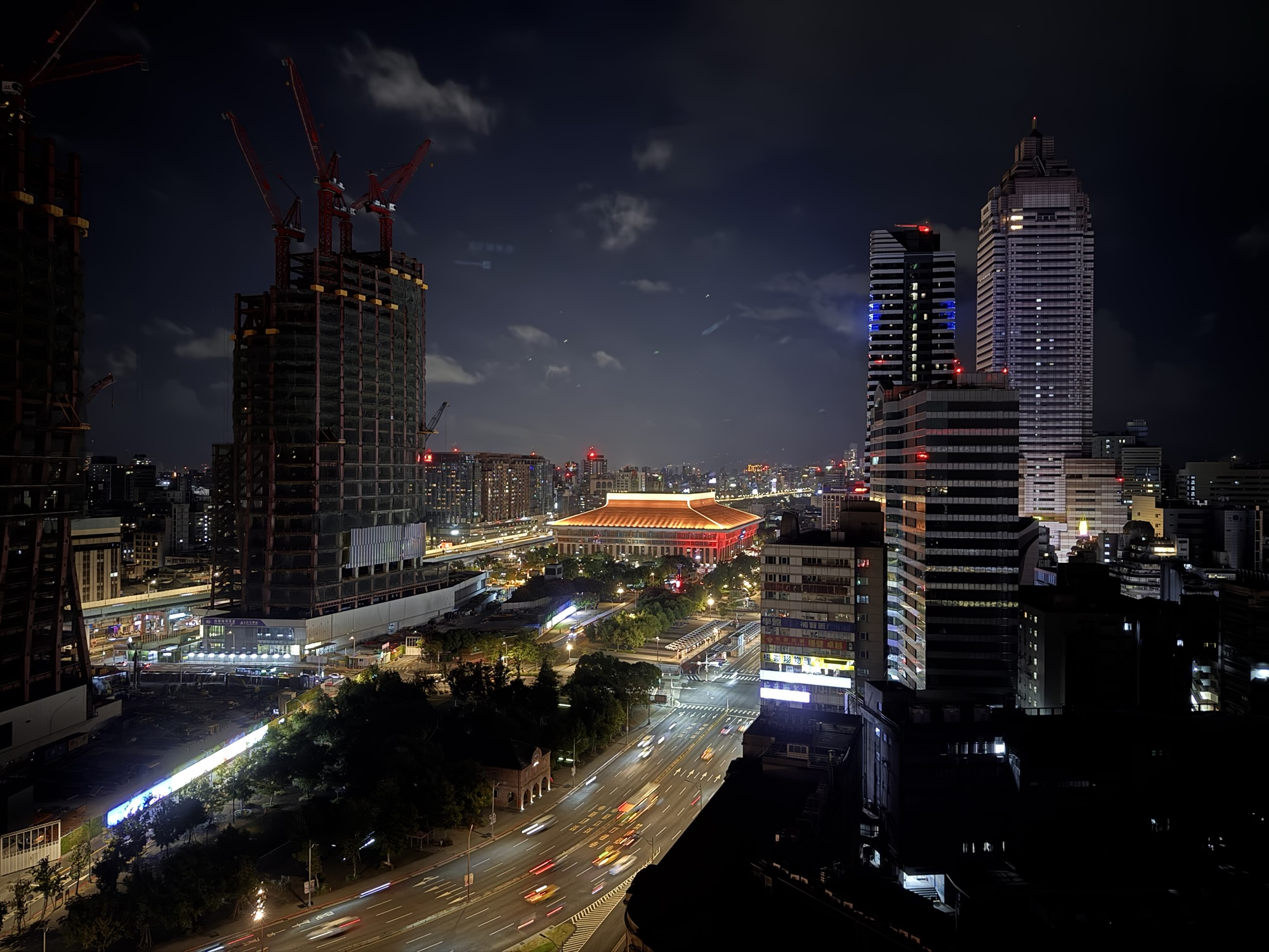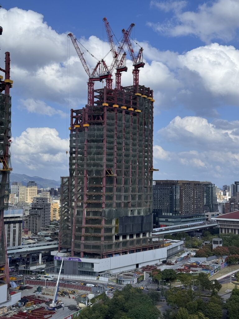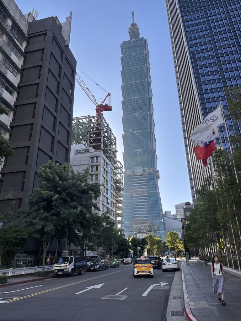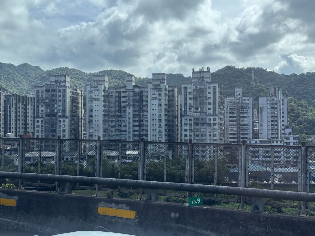 Mittwochmorgen verlasse ich mein Hotel in Kyoto und mache mich auf den Weg zum Kansai International Airport, der die gut zu merkende Kennung KIX hat. Mittlerweile habe ich eine gewisse Routine mit den öffentlichen Verkehrsmitteln, Vorortzug nach Osaka und dann einen Airport-Bus vom Bahnhof Umeda. Durch den Erwerb einer Wagyu-Krokette gebe ich mein letztes japanisches Bargeld aus, den kläglichen Rest auf meiner Suica-Karte setze ich an einem Automaten für einen Sprudel ein. Der Flug dauert gute drei Stunden, dann bin ich in Taipeh. Hier ist es nochmal ein Stück wärmer und feuchter; Puh. Ich habe mich ins CitizenM Hotel eingebucht, eine Viertelstunde Laufentfernung zum Hauptbahnhof. Dort bekomme ich ein kleines Zimmer im 20 Stock, und hätte einen direkten Blick auf das Taipeh 101 Gebäude – wenn da nicht auf halber Strecke das Ich-Bin-Im-Weg 60 Gebäude stehen würde. Trotzdem ein cooler Ausblick. Bei CitizenM denke ich sofort an „M – eine Stadt jagt einen Mörder“, aber meine Zeit im Hotel bleibt ruhig. Da Hotel versucht möglichst modern zu sein, wir sind ja alle so coole travelling citizens. Das Zimmer lässt sich mittels des zur Verfügung gestellten iPads steuern, ich probiere am nächsten Morgen die Stimmung „Fokus“ aus, aber hab nach kurzer Zeit eher die Stimmung ‚genervt‘. Auf dem Bildschirm laufen psychedelische Muster, die Decke des Bades (mit einer lichtdurchlässigen Scheibe vom Rest vom Zimmer abgetrennt) zeigt welche Farbkombinationen sich mit modernen RGB LEDs erzeugen lassen.