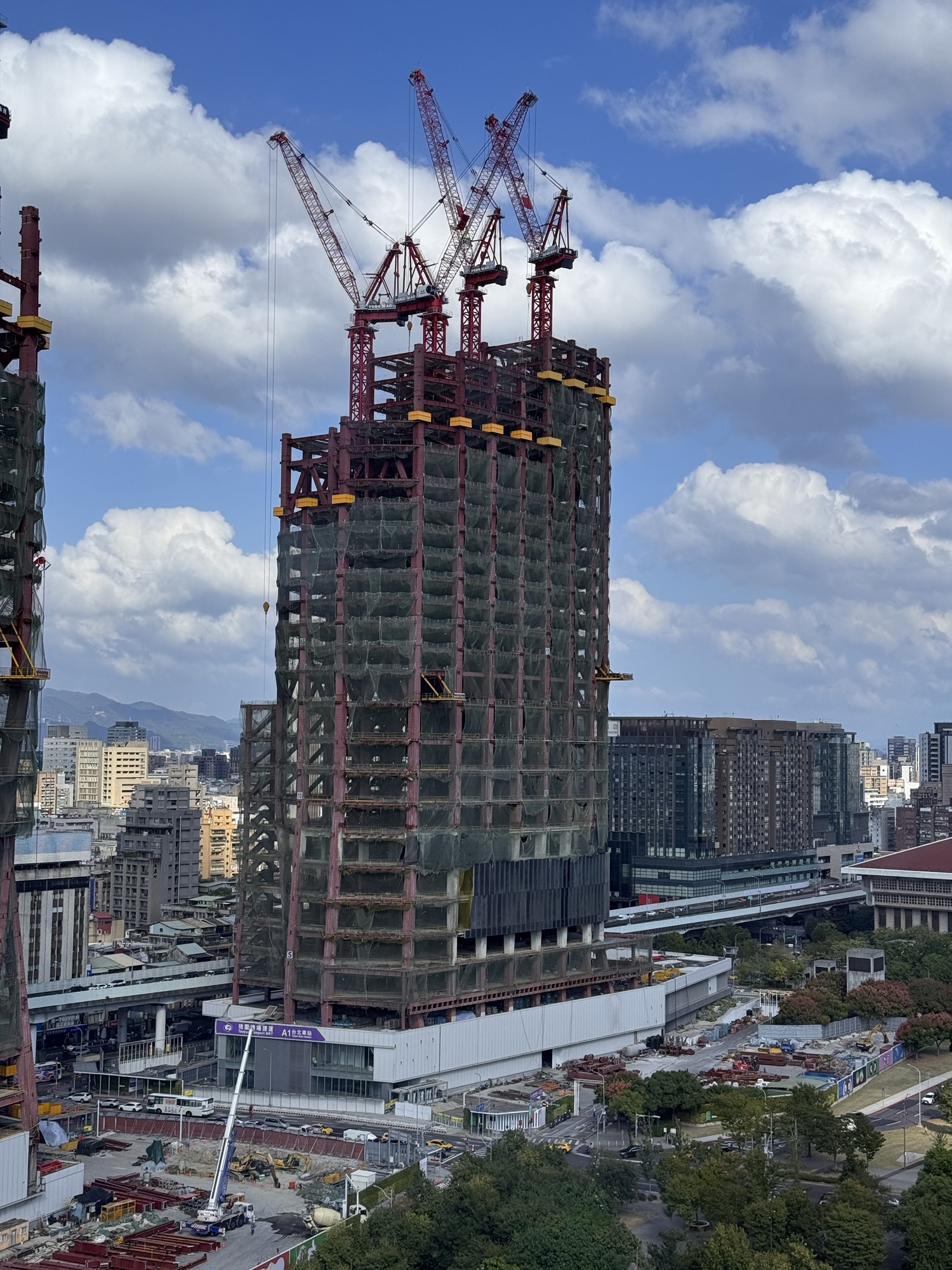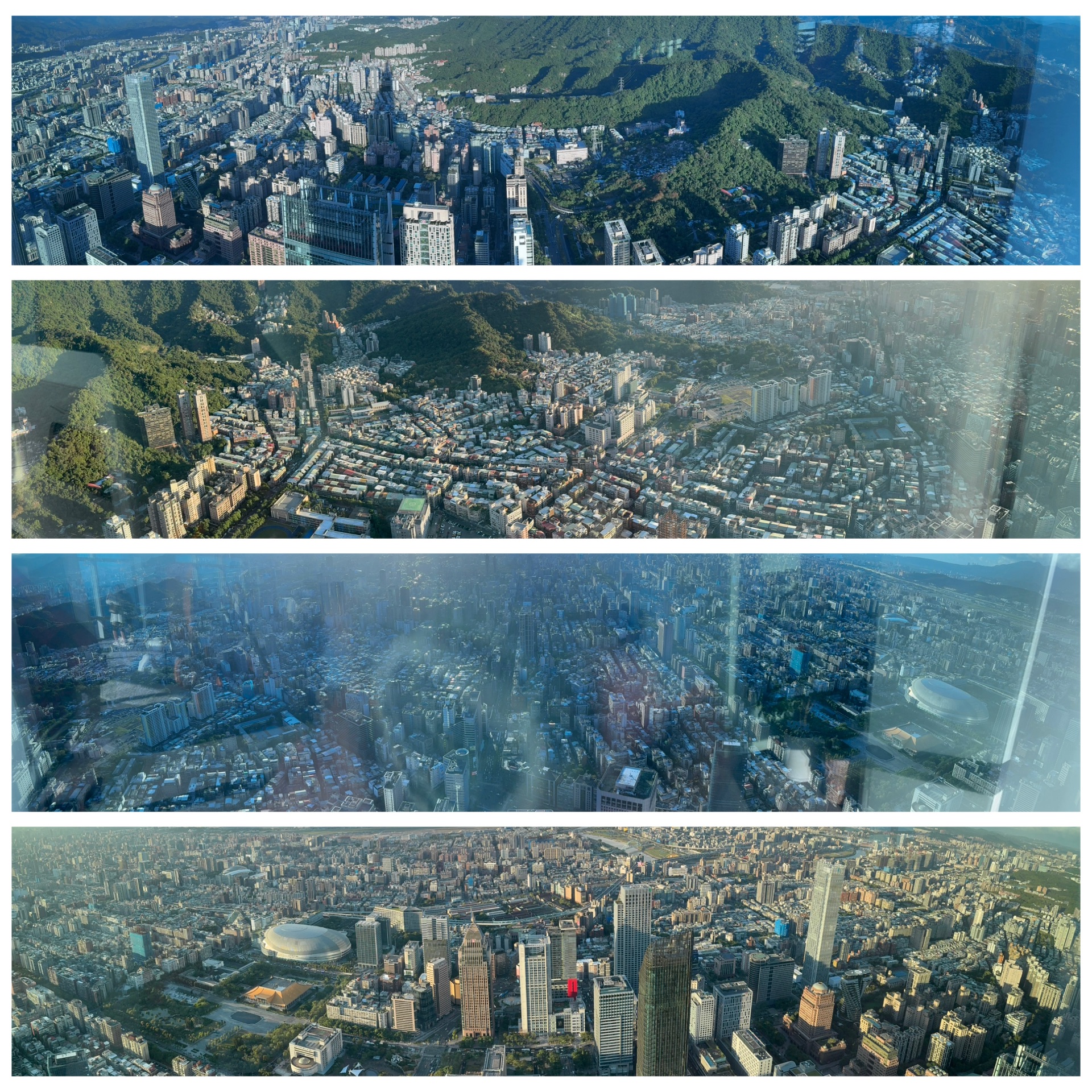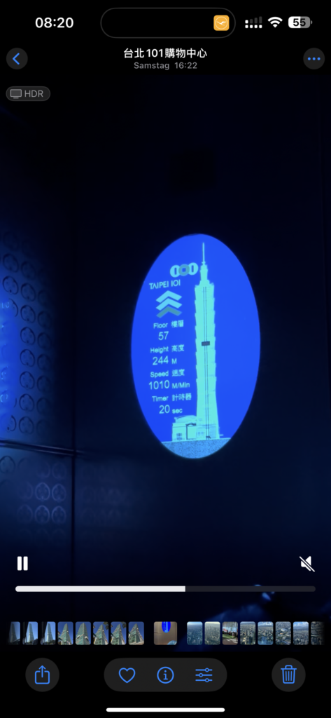Danach knappe zwei Stunden im XiMen-Viertel, recht nah an meinem Hotel, Essenfassen in Eigenregie. Danach der LongShan Tempel mit etwas Erklärung, noch ein Markt, und dann zum Taipei 101. Das war eine Zeit lang das höchste Gebäude der Welt, und macht schon was her. Im 89 Stock gibt es eine Aussichtsplattform; und in Erdnähe eine Shopping Mall. Was ich offensichtlich nicht richtig gelesen habe bei der Tourbeschreibung: Die Aussichtsplattform ist nicht in der Tour inbegriffen. Wir bekommen eine Stunde für die Mall, und dann wäre wieder Treffen, damit uns James hilft mit U-Bahn heimzukommen. Ich verzichte auf die Hilfe, auf die Mall, und kaufe mir selber eine Karte für den Ausblick. Nachteil: der 101 ist im Osten der Altstadt, und so ist das meiste Interessante um 16:30 im deutlichen Gegenlicht.