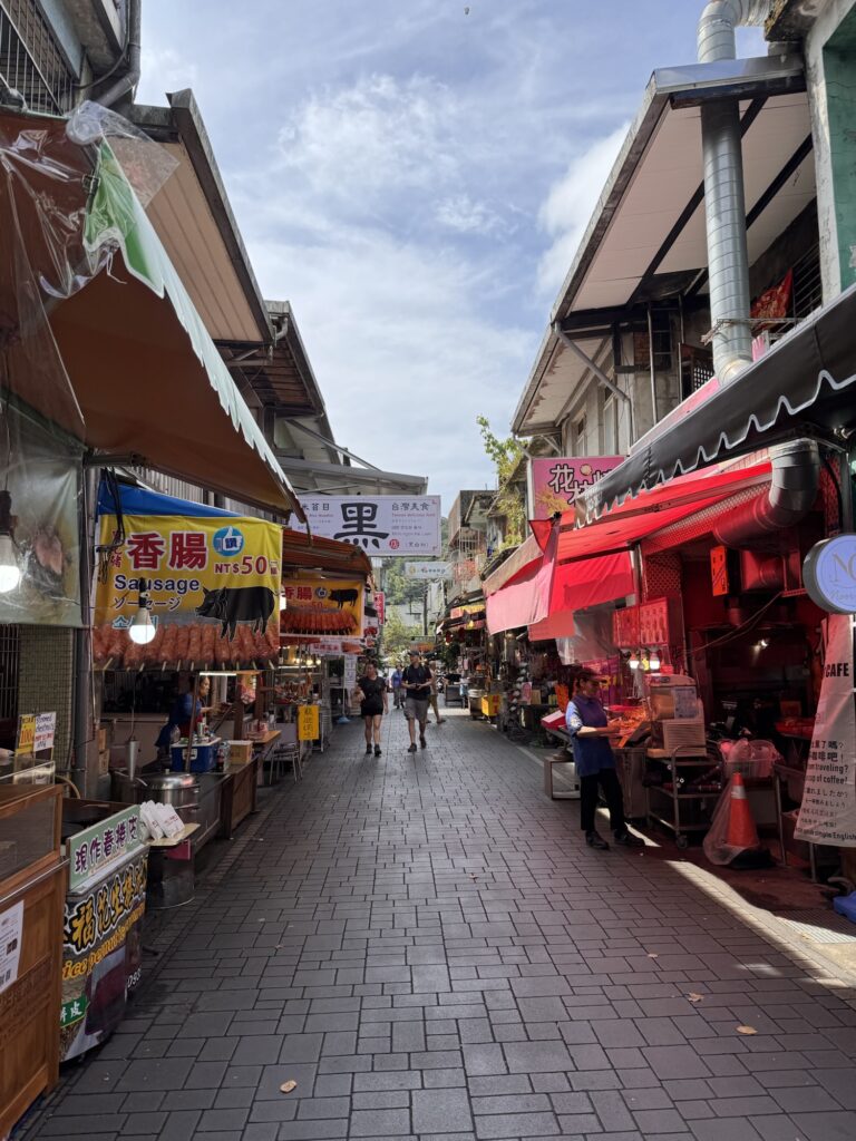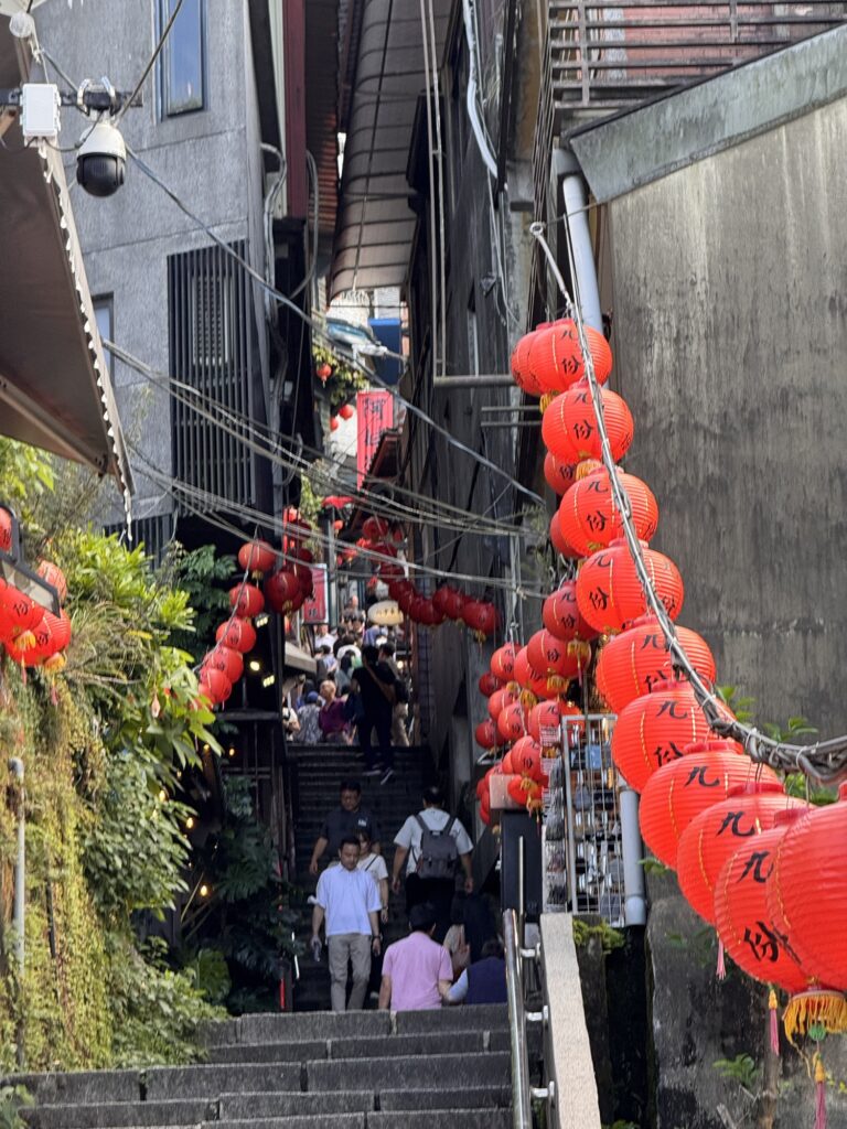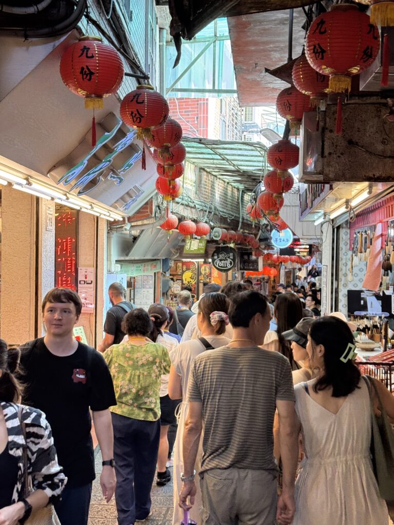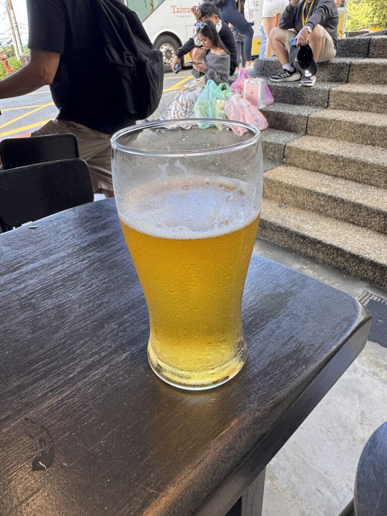 Jiufen, der nächste Stopp mit knapp zwei Stunden Aufenthalt ist eigentlich ein riesengroßer Souvenir- und Fressshop, der als altes Bergdorf getarnt ist. Auch wenn man mit der geschickten Wahl des Ausschnitts beim Fotografieren auch in paar schöne Motive findet – jedes Haus ist entweder ein Essenstand oder ein Shop. Die Gasse dazwischen ist überdacht, so dass auch Regen die Touristen nicht an ihrer Konsum-Mission hindert. Pikant auch hier: es gibt mindestens drei Stinky-Tofu Läden, und die verseuchen olfaktorisch jeweils so ca. 60 Meter Ladengasse. Das kann die Nachbarn nicht erfreuen. Und die Menschenmassen schieben sich weiter durch die Gasse. Vierzig Minuten vor der Zeit beende ich meinen Jiufen Ausflug und finde einen Laden der mir ein IPA verkauft. Gute Entscheidung.
