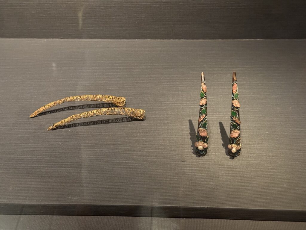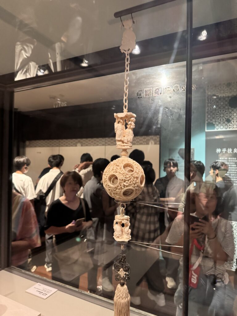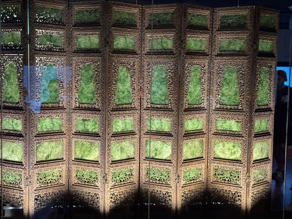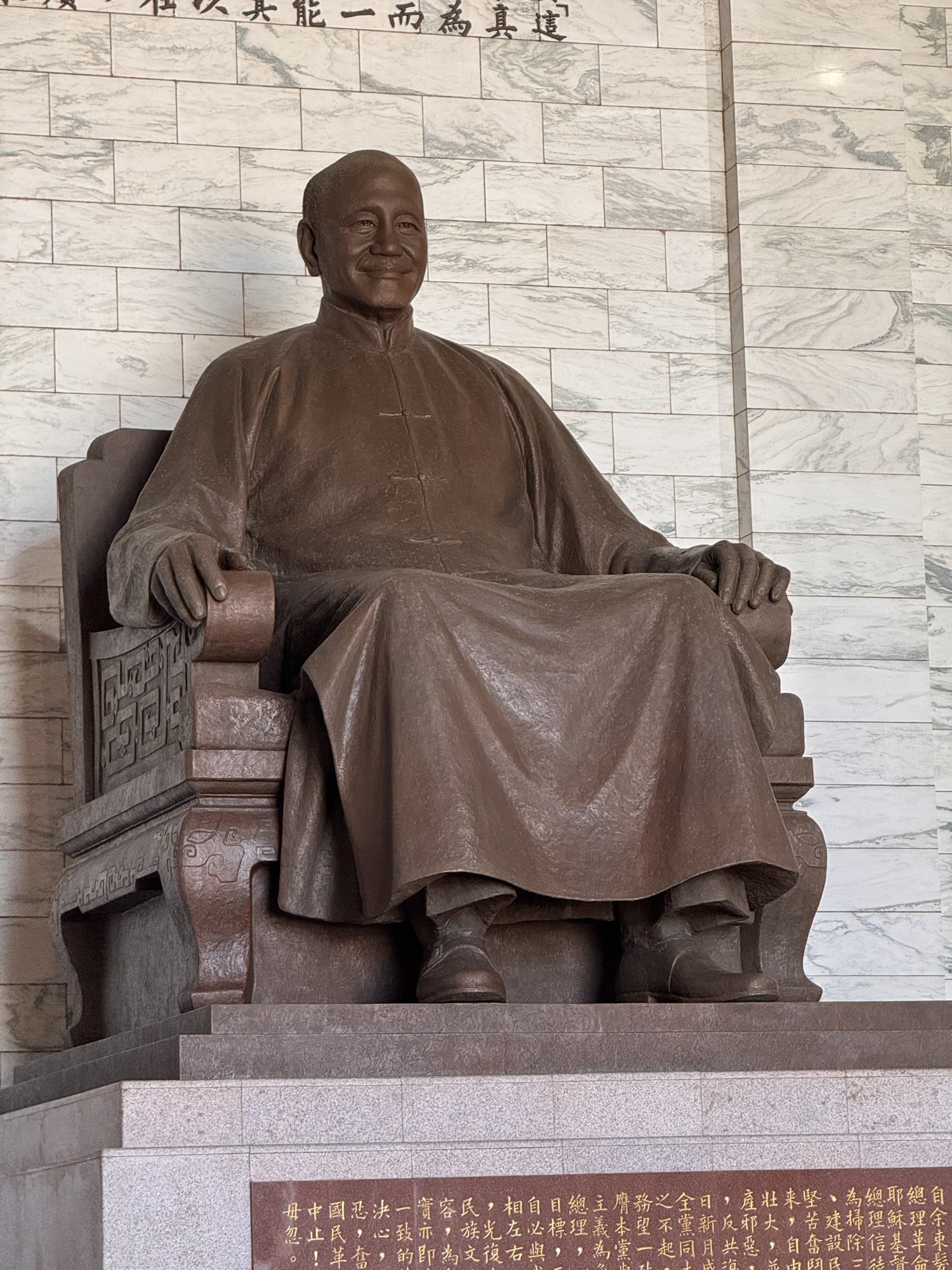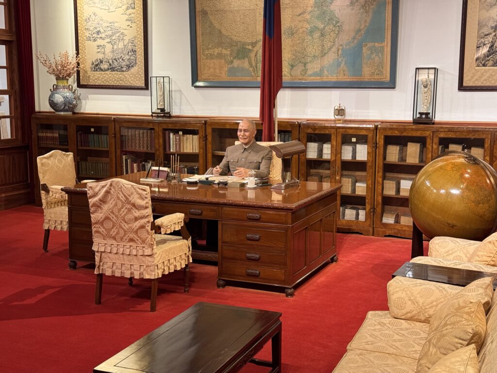 von außenFingernagelschoner – sehr lange Fingernägel waren der Flex für ‚ich muss nicht arbeiten‘In drei Generationen……aus einem Stück Elfenbein geschnitztKupferkessel …… mit eingraviertem VertragJade-WandPorzellanChiang Kai Shek MemorialMit Statue des Staatsgründersseine Autos …… und sein Büro – ganz Original (ohne Puppe)Wachwechsel