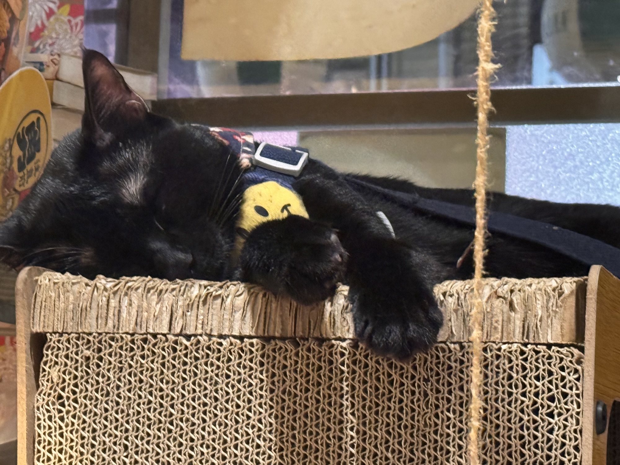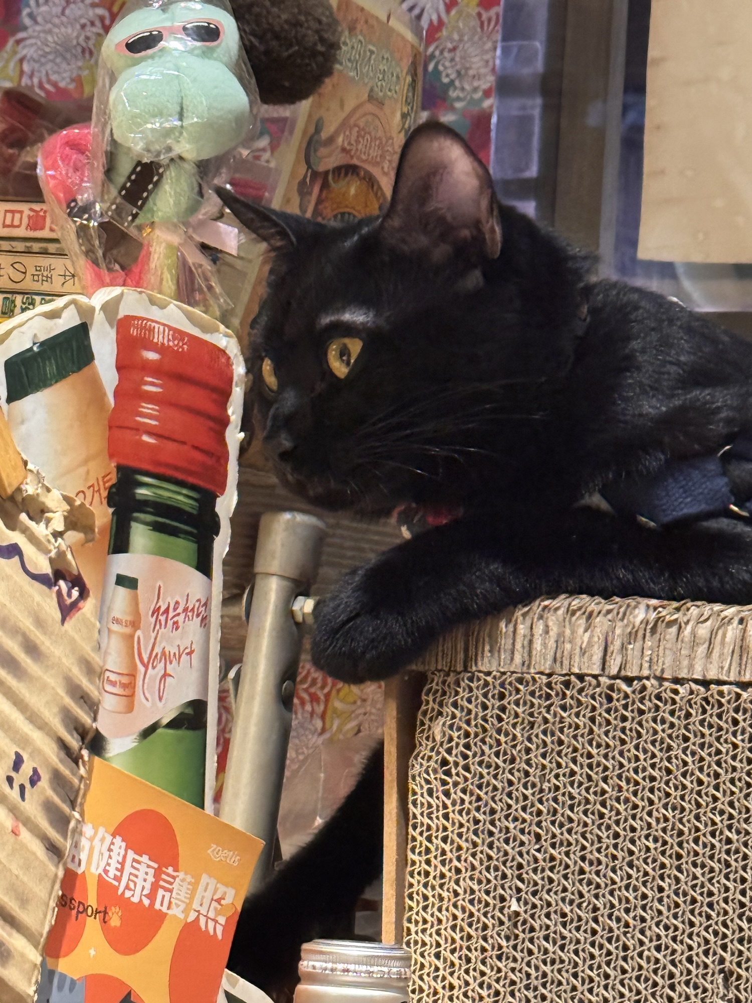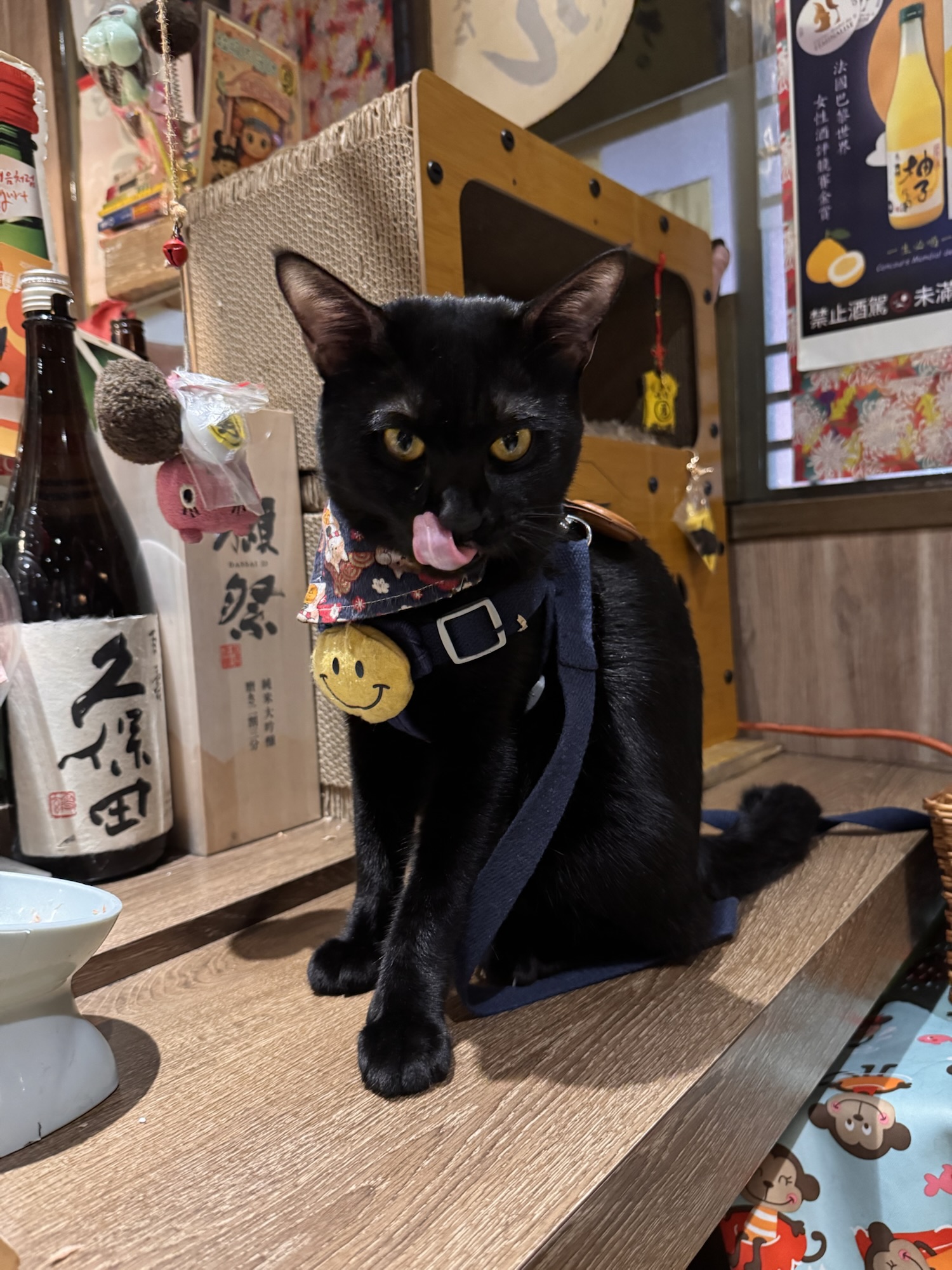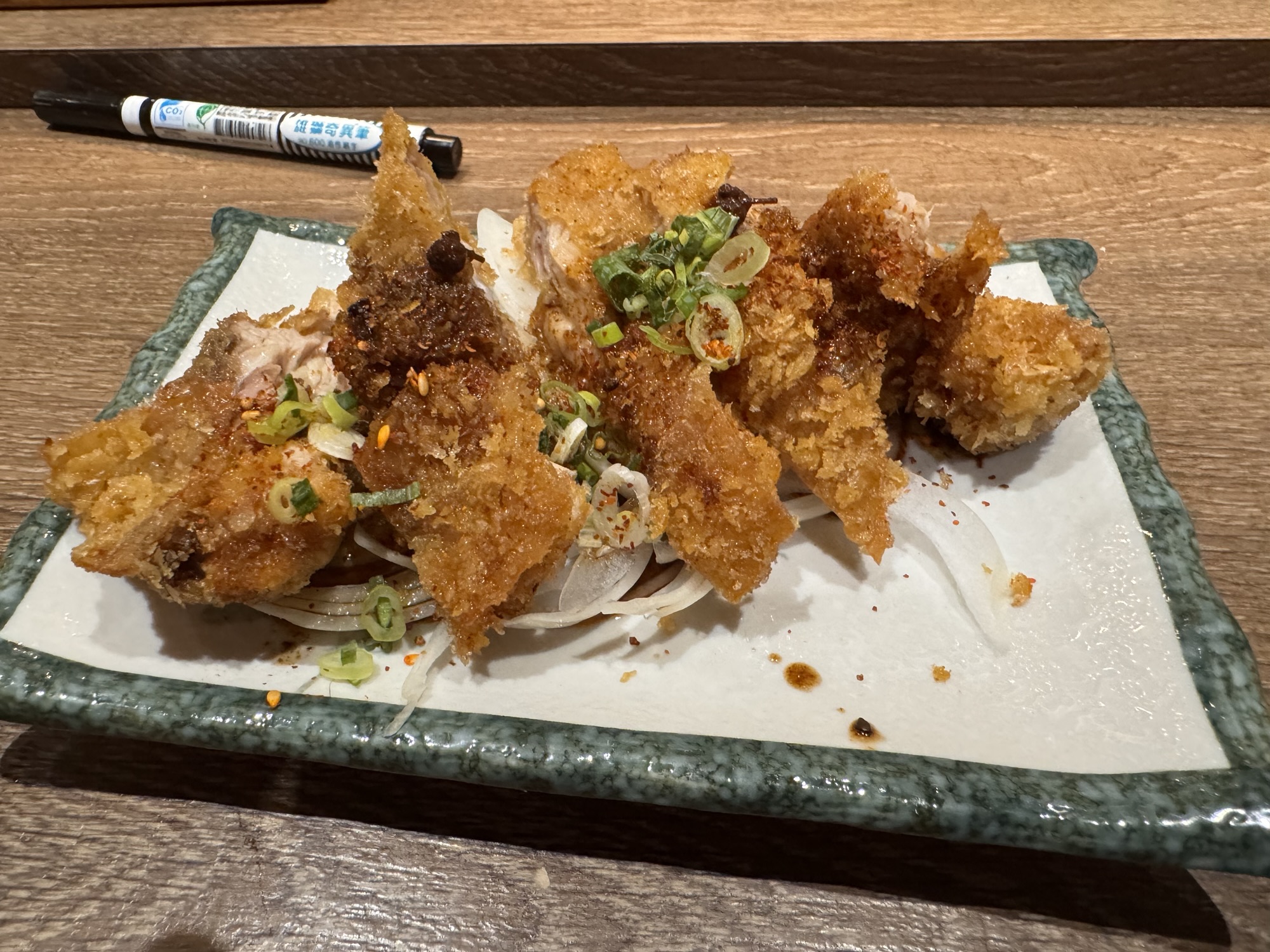 Claudia hat mich mit einigen Tipps über Taipeh versorgt. Sie sind kreuz und quer über die ganze Stadt verstreut, und bislang habe ich wenig genutzt. Aus deshalb will ich heute ins COW bei Izakaya gehen, auch wenn es eine 50-minütige Fahrt vom Hotel aus wäre. Das gute – die Fahrt ist auch vom Taipeh 101 nur 50 Minuten, also mache ich mich gleich nach der Tour auf den Weg, obwohl duschen schon echt was feines gewesen wäre. Mit dem Bus 652 geht es nach Neu-Taipeh, also der Stadtteil auf der westlichen Seite des Tamsui Flusses. Durch meine letzten Restaurantbesuche gewarnt, frage ich erst an der Theke ob sie Kreditkarte nehmen, ich habe kaum noch Bargeld. Der junge Kollege ist mit meiner Frage sprachlich überfordert, die Chefin meint barsch: No English. Ich zeige die auf dem Handy gespeicherte Karte, und der Kollege meint OK. Puh. Ich bekomme einen Platz an der Theke, neben dem Häuschen des schwarzen Hauskaters, der mich den Rest des Abends ignoriert. Die Karte ist ein DIN A4 Blatt auf chinesisch, wo man seine Wünsche ankreuzen kann. Zu manchem fehlt mir das Verständnis oder der Mut (G-Boy Mashup (Herz und Furz), Sitzsack, Wilde Schnecke, Dickdarm), aber ich bekomme genug zusammen. Taiwanesisch ist das hier auch nicht, sondern ein japanisches Izakaya/Yakitori Restaurant. Nach einigen Tellerchen bin ich fast satt, und will die Vernunft walten lassen. Ich will zahlen. Die Chefin ist nicht erfreut, bellt etwas in Google Translate: „How fast?“ „Is Holiday, you should stay“ „Beer, I invite you“. Sie zapft mir ein Bier, und damit ist mein Schicksal besiegelt. Ich trolle mich wieder an meinen Platz, bestelle noch ein paar Spießchen und schaue dem Treiben zu, bzw. gehöre dazu. Es dauert etwas länger, es wird noch ein Bier, aber irgendwann muss ich wirklich gehen. Als ich mein Handy mit Kreditkarte hinhalte, ist es dann aber doch nicht OK. „No problem, you come back tomorrow“. Nach kurzer Diskussion gehe ich aber doch zum 7-11 gegenüber, immerhin weiß ich jetzt schon, was der heutige Abend kostet. Ich nehme mir ein Taxi ins Hotel, weil der Bus erst in 20 Minuten gekommen wäre, war aber auch nicht sehr teuer.