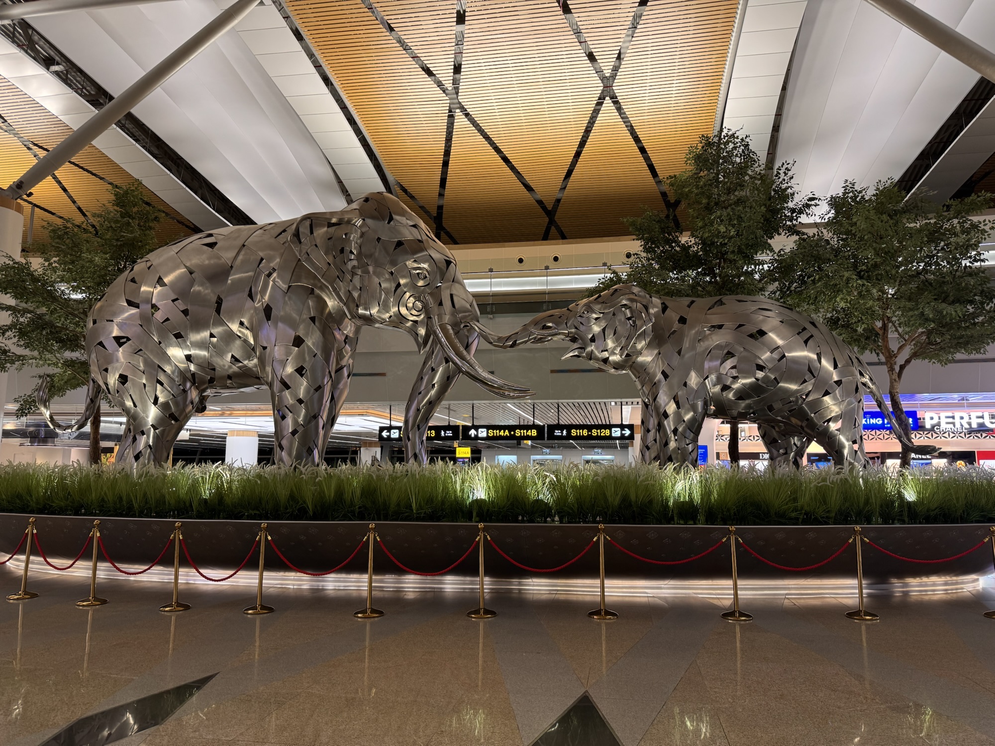 Am nächsten Morgen schüttet es wie auf Kübeln. Meine Unternehmungslust sinkt geringfügig – es gibt ja auch keine Must-See Punkte mehr, denn so nannte sich ja schon die Tour vom Vortag. Aber um 11:00 muss ich das Zimmer räumen, und mein Flug geht erst um 19:00, also lasse ich mein Gepäck im Hotel und beschließe, noch ein wenig in eine Mall zu gehen. Die Taipei City Mall ist nicht weit, und es sind auch keine Kübel mehr, aus denen es schüttet. Die Mall ist leider nur ein beidseitig von Geschäften gesäumter Verbindungstunnel zwischen zwei Metrostationen und die Läden sind nicht meines: billiges Handyzubehör und viel Werbung für Playstations. Alles blinkt und ist bunt – gar nicht meines. Nach 10 Minuten komme ich wieder ans Tageslicht. Der Regen hat gerade aufgehört, und ich sehe Claudias Tipp nach dem Museum of Contemporary Art, gar nicht weit. Sehr moderne Installationen, bei vielen denke ich mir „was will mir der Künstler damit sagen“, aber einiges berührt mich ästhetisch. Vielleicht ließe sich was davon nachbauen (und ich meine jetzt nicht der abgehängte Müll, den ein Freund mit meinem Arbeitszimmer verglich)? Danach gehe ich noch in ein Café auf einem Markt (Café von Claudia empfohlen, Markt mit Tour kurz besucht), und trinke meinen Hopfenkaffee. Dann wieder ins Hotel, Gepäck geholt, zur Schnellmetro zum Flughafen, dort Metrokarte mit ca. 1€ Guthaben an deutsche Rucksacktouristin verschenkt, Check-In; es scheint ja alles gut zu gehen. In Bangkok 2 Stunden Aufenthalt, aber die von Doro gewünschten Matcha-KitKat gibt es nicht. Gute 10 Stunden mit Austrian Airlines nach Wien, wo ich planmäßig 35 Minuten zum Umsteigen habe (mit Passkontrolle und nochmal Security). Klappt nicht, wer hätte es geahnt? Noch bevor ich am Gate ankomme, hat mich Austrian umgebucht. Jetzt schreibe ich am Flughafen diesen Blog fertig. Ich veröffentliche den jetzt auch gleich; meine Erfahrung lehrt mich, dass ich daheim dann immer anderes zu tun habe als den Blog fertig zu schreiben.
