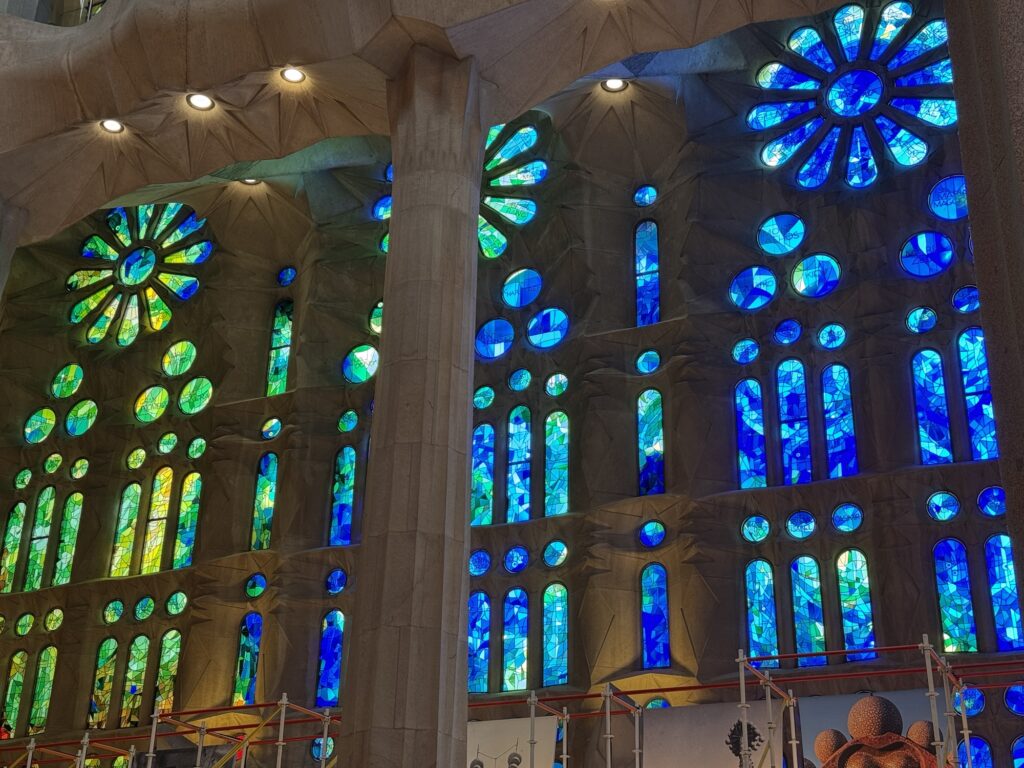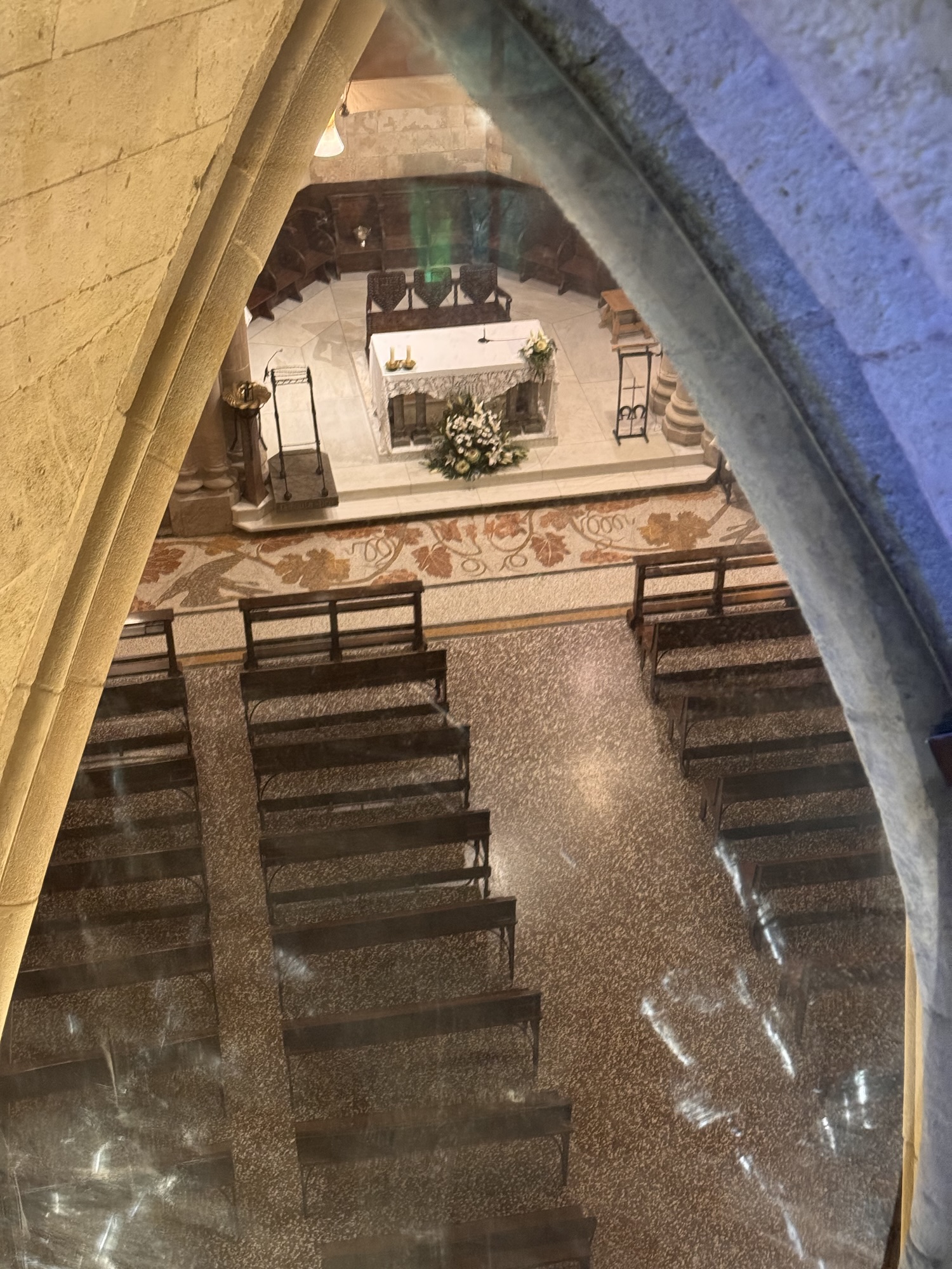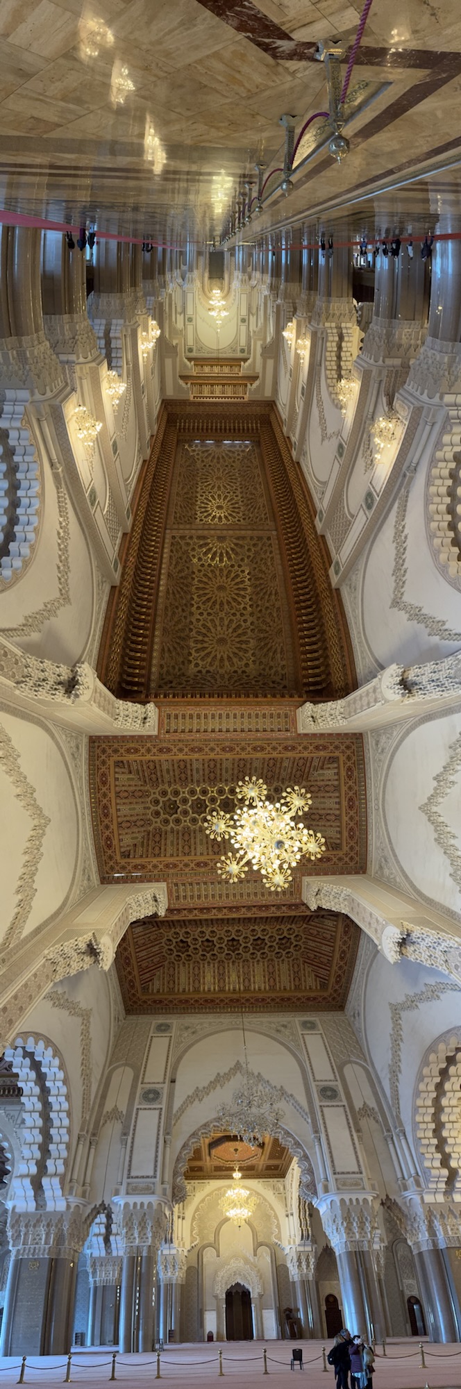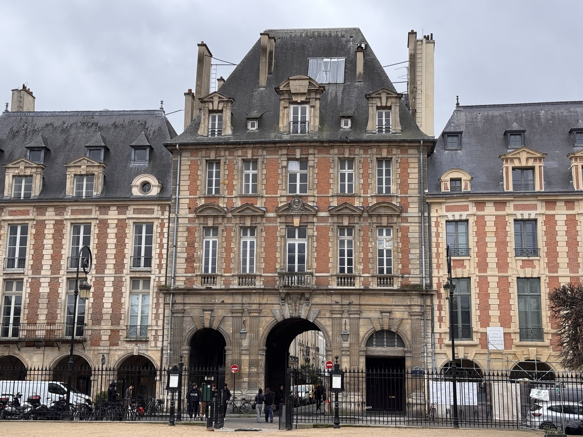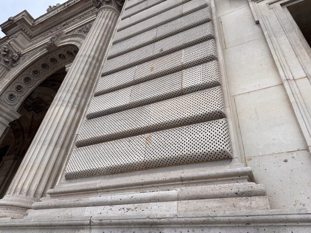 Ich mache mich auf den Weg zu Saint Chapelle. Hier werden Eintrittspreise von 22 Euro aufgerufen, doch ich bekomme einen 6 € Rabatt, weil ich EU-Bürger bin. Erst fürchte ich, dass mich Julia verarscht hat: ein niedriges Gewölbe – tatsächlich sehr hübsch bemalt, ein paar Restaurierungsbruchstücke aber zB keine Fenster. Per Chat dirigiert mich Julia aus der Kellerkapelle in die eigentlich Kirche – das ist schon besser. Die größte Attraktion sind die 15 Fenster aus Buntglas, die insgesamt 1113 Szenen aus der Bibel darstellen – das sind weniger als 1,5 Cent pro Szene. Es wird auch noch fleißig fertig-restauriert, dabei mit der cleversten Baugerüstverkleidung die mir je aufgefallen ist – es ist komplett mit einer Spiegelfolie verkleidet, und da die Kirche ja recht einheitlich ist, fällt es kaum auf. Nur wenn man sich im Verhältnis dazu bewegt, wandern manche Objekte entgegen der erwarteten Richtung.
