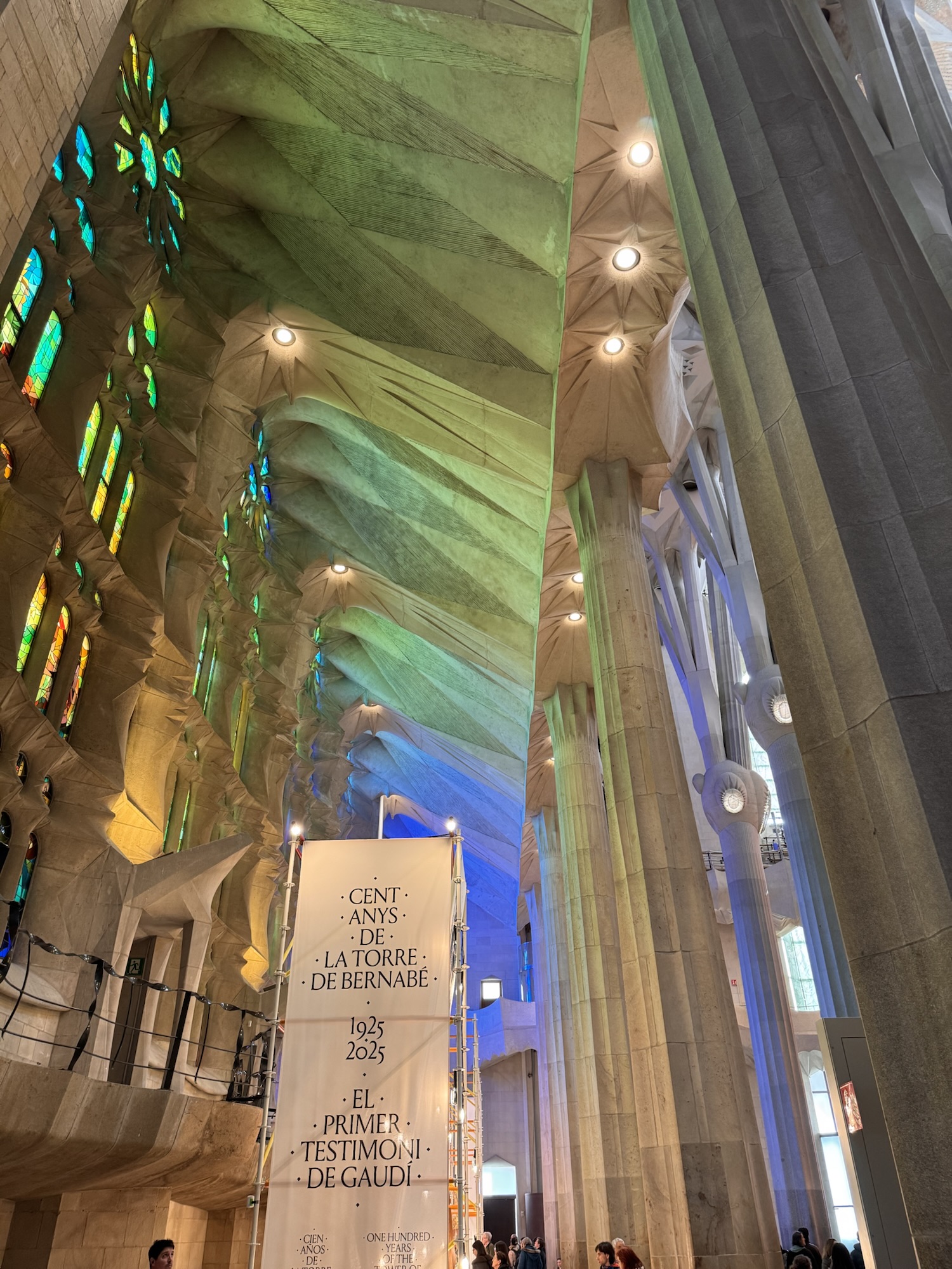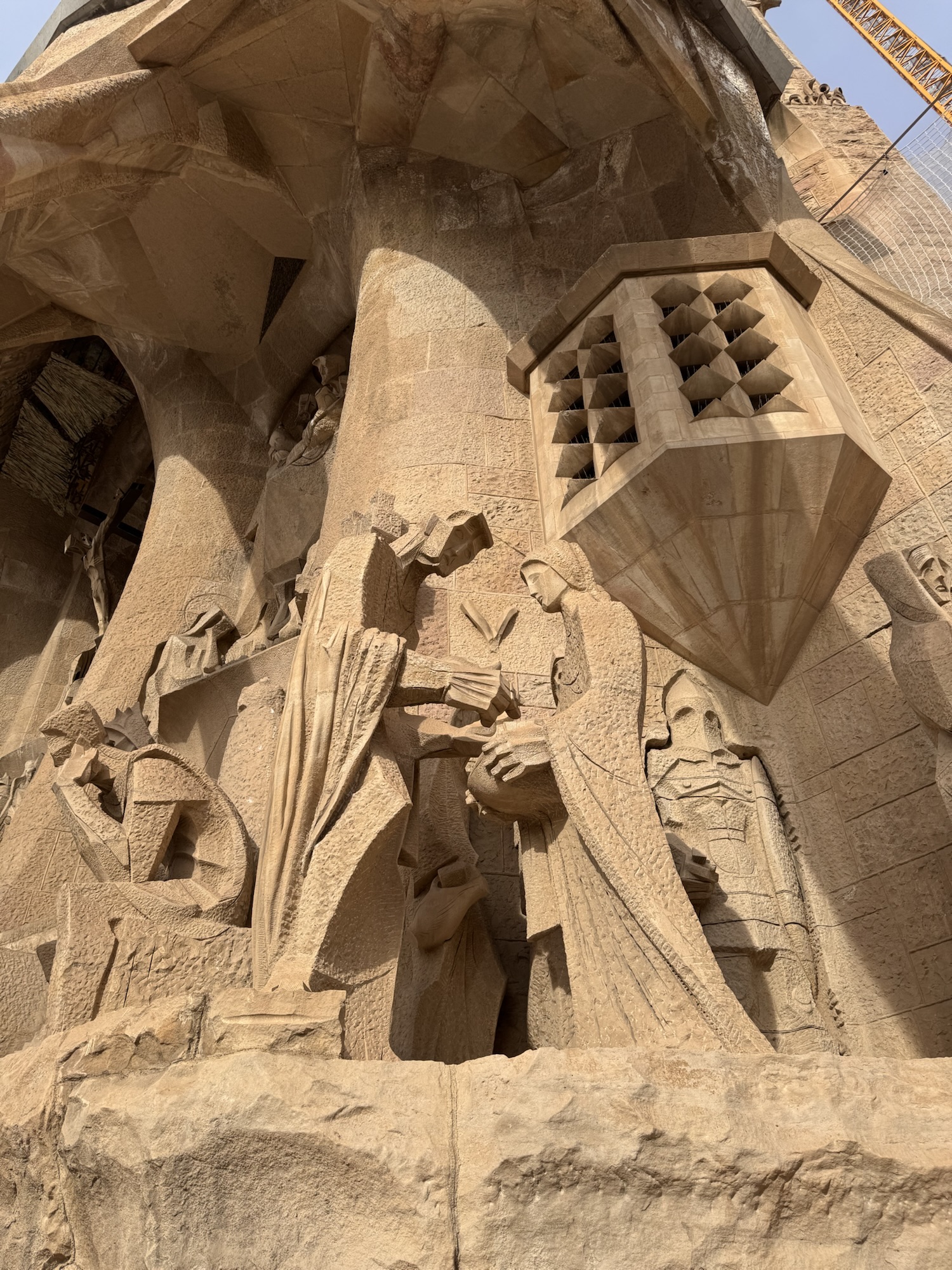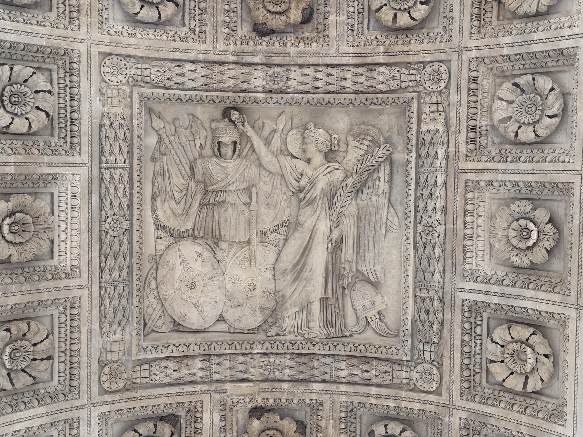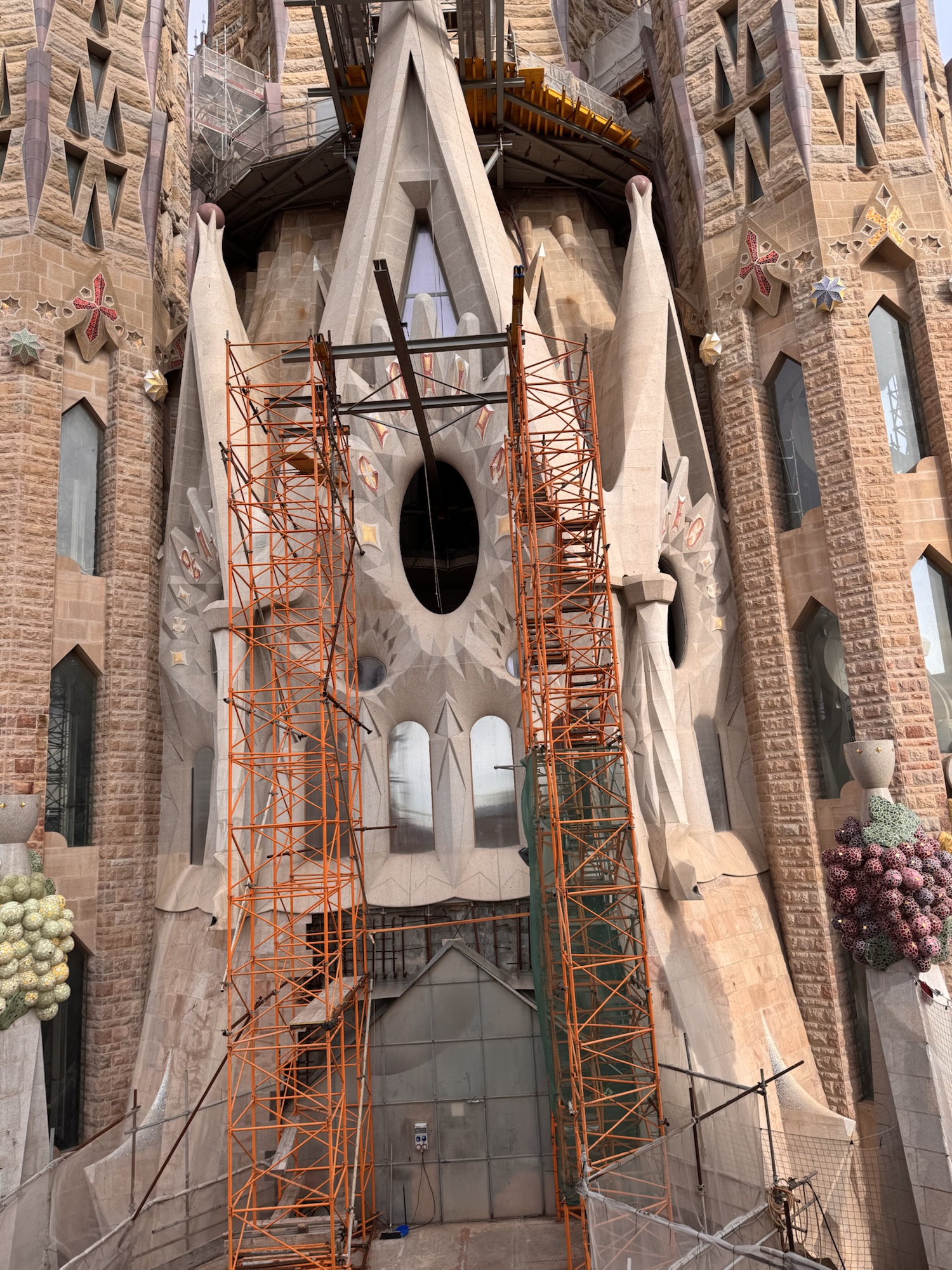 Ich mache mich auf den Weg zu Saint Chapelle. Hier werden Eintrittspreise von 22 Euro aufgerufen, doch ich bekomme einen 6 € Rabatt, weil ich EU-Bürger bin. Erst fürchte ich, dass mich Julia verarscht hat: ein niedriges Gewölbe – tatsächlich sehr hübsch bemalt, ein paar Restaurierungsbruchstücke aber zB keine Fenster. Per Chat dirigiert mich Julia aus der Kellerkapelle in die eigentlich Kirche – das ist schon besser. Die größte Attraktion sind die 15 Fenster aus Buntglas, die insgesamt 1113 Szenen aus der Bibel darstellen – das sind weniger als 1,5 Cent pro Szene. Es wird auch noch fleißig fertig-restauriert, dabei mit der cleversten Baugerüstverkleidung die mir je aufgefallen ist – es ist komplett mit einer Spiegelfolie verkleidet, und da die Kirche ja recht einheitlich ist, fällt es kaum auf. Nur wenn man sich im Verhältnis dazu bewegt, wandern manche Objekte entgegen der erwarteten Richtung.