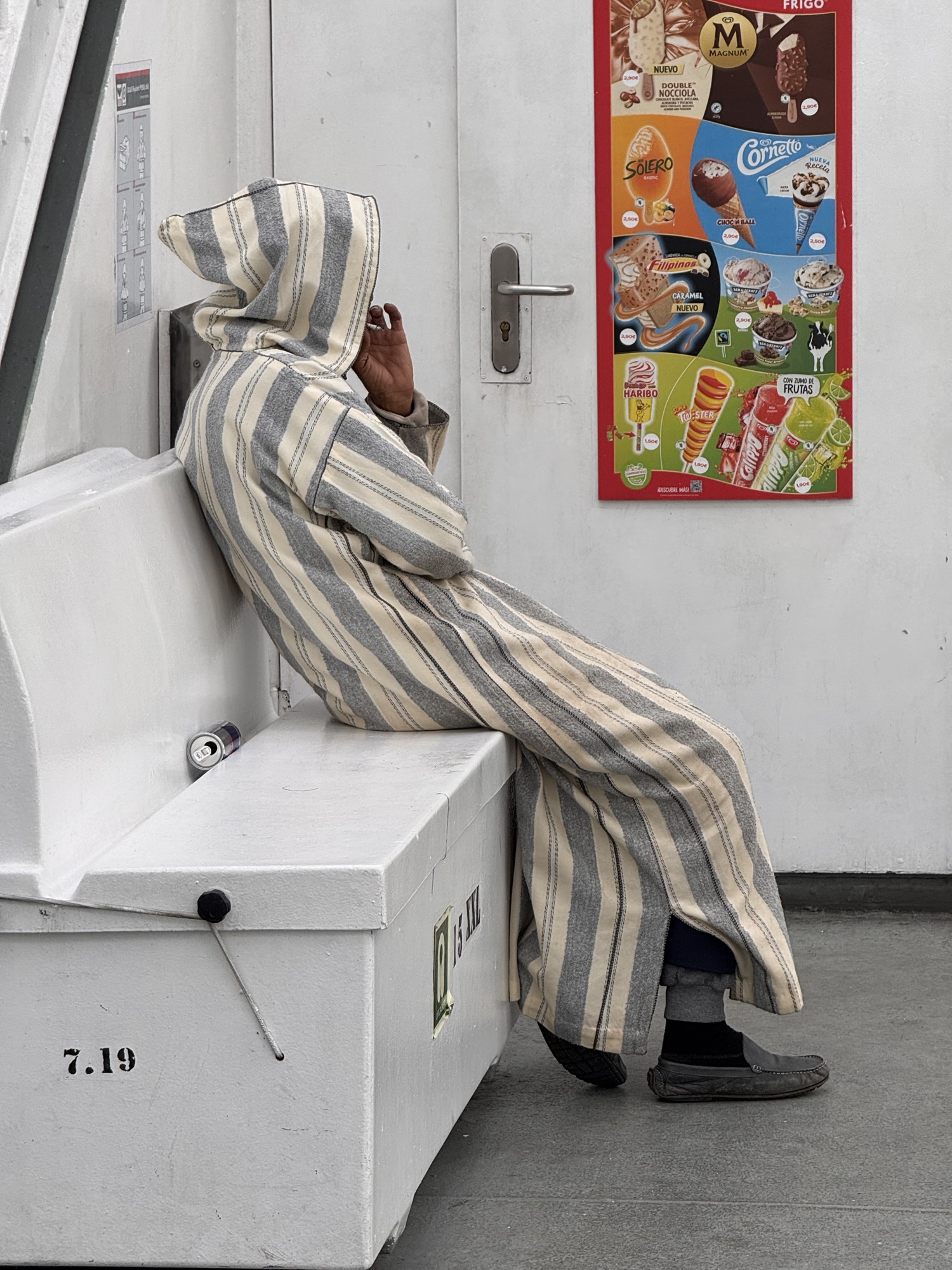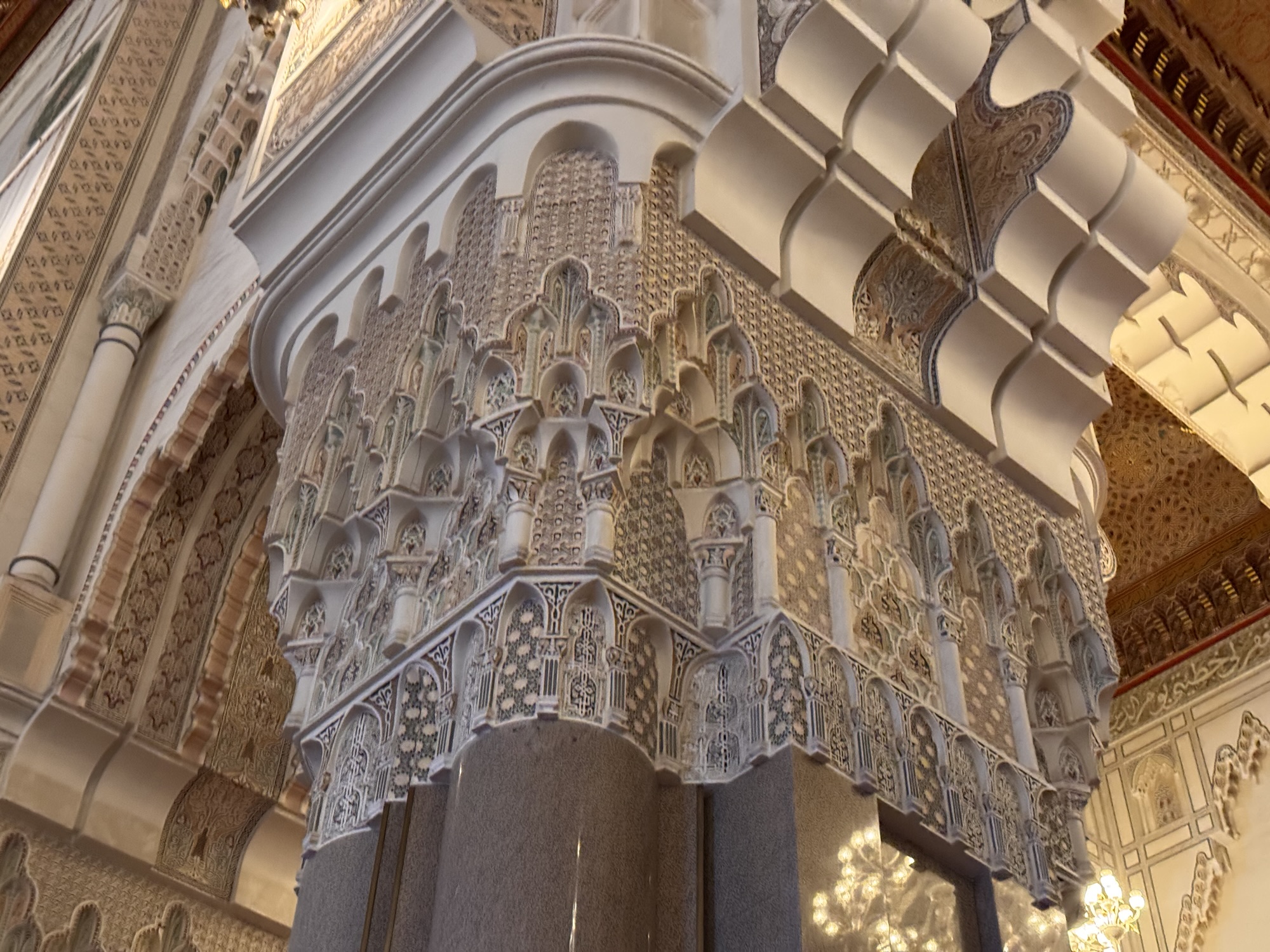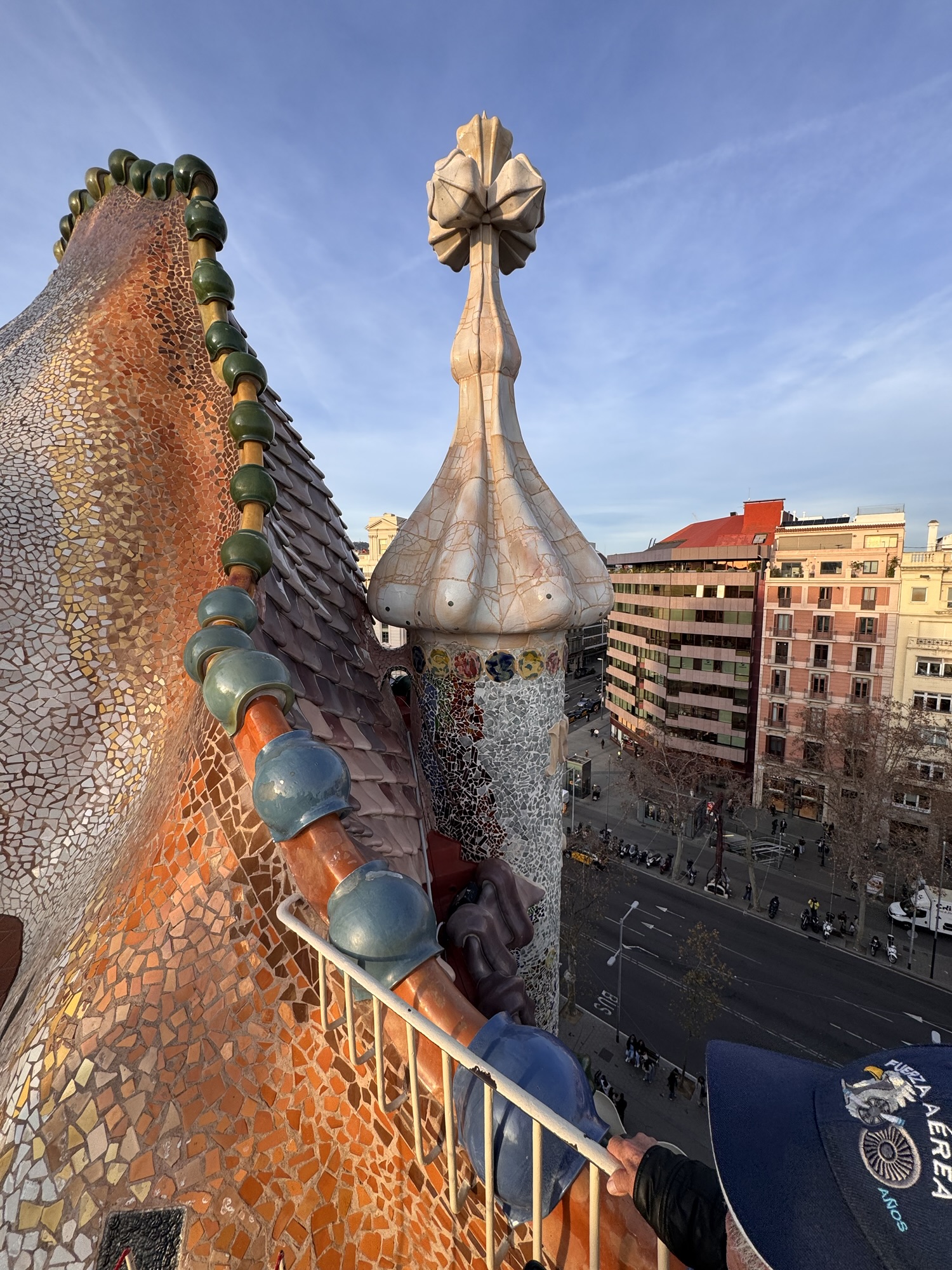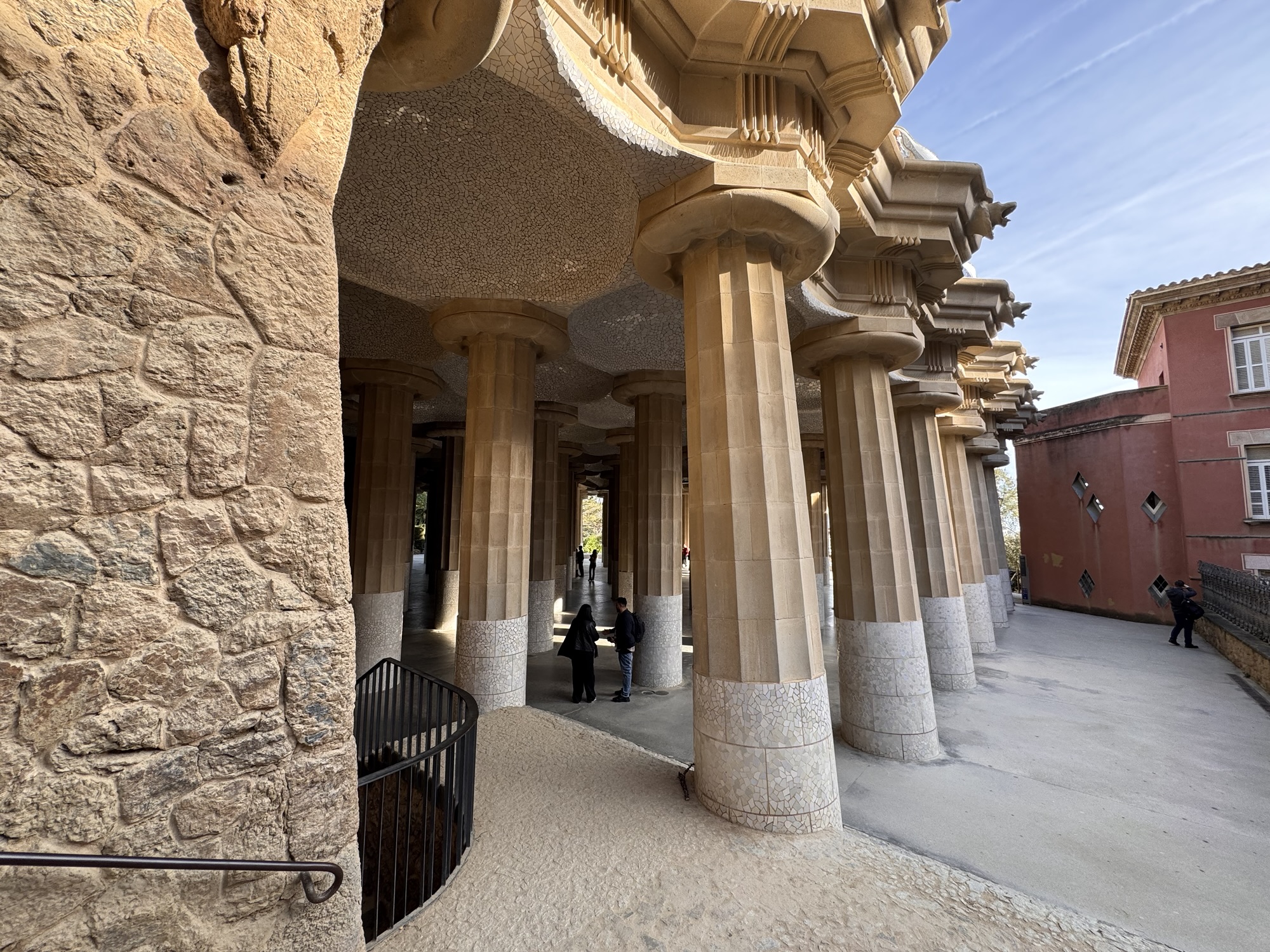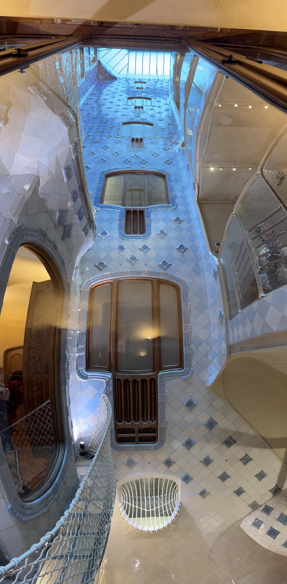 Ich mache mich auf den Weg zu Saint Chapelle. Hier werden Eintrittspreise von 22 Euro aufgerufen, doch ich bekomme einen 6 € Rabatt, weil ich EU-Bürger bin. Erst fürchte ich, dass mich Julia verarscht hat: ein niedriges Gewölbe – tatsächlich sehr hübsch bemalt, ein paar Restaurierungsbruchstücke aber zB keine Fenster. Per Chat dirigiert mich Julia aus der Kellerkapelle in die eigentlich Kirche – das ist schon besser. Die größte Attraktion sind die 15 Fenster aus Buntglas, die insgesamt 1113 Szenen aus der Bibel darstellen – das sind weniger als 1,5 Cent pro Szene. Es wird auch noch fleißig fertig-restauriert, dabei mit der cleversten Baugerüstverkleidung die mir je aufgefallen ist – es ist komplett mit einer Spiegelfolie verkleidet, und da die Kirche ja recht einheitlich ist, fällt es kaum auf. Nur wenn man sich im Verhältnis dazu bewegt, wandern manche Objekte entgegen der erwarteten Richtung.