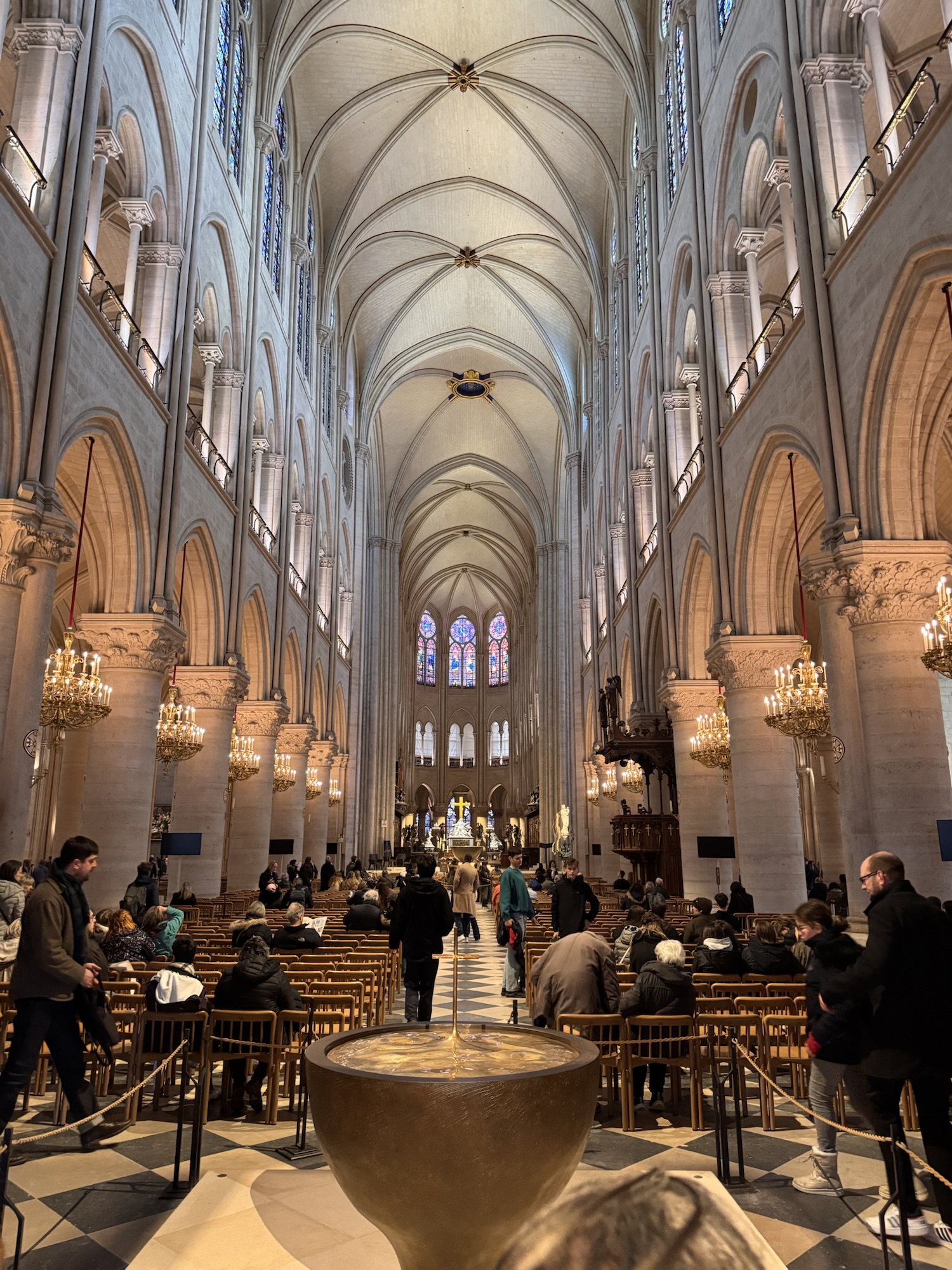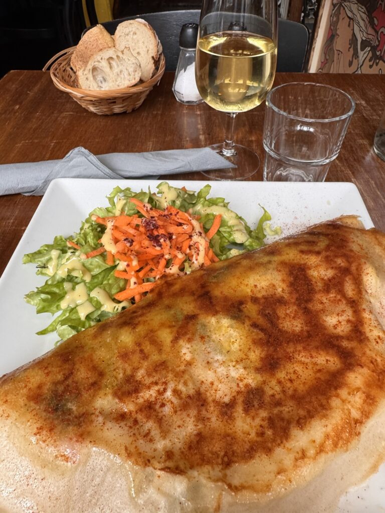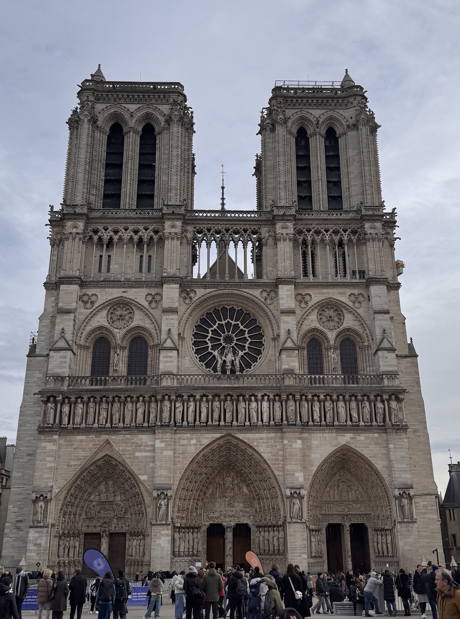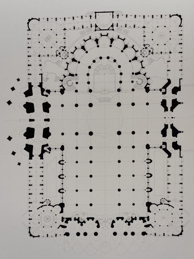 Am nächsten Tag (bewusst schreibe ich nicht Morgen) probiere ich einen weiteren Restauranttipp von Ramsi aus, auch lecker. Danach mein vorher eigentlich einziger feste Programmpunkt in Paris: die Cathédrale Notre-Dame de Paris, frisch restauriert nach dem Feuer. Obwohl erst seit 2024 offen, wirkt sie viel altmodischer als die anderen besuchten Sakralbauwerke auf meiner Reise. Es entstehen einige Fotos, schön ist sie schon. Neu gestaltet ist das Reliquar für die Dornenkrone, die Jesus bei der Kreuzigung getragen hat. DAS Original! Echt! Doppelschwör! Rund um die Kathedrale sind lauter Seitenkapellen, jeweils anderen Heiligen geweiht. Eine davon ist Saint Paul Chen geweiht, die Bilder mit chinesischen Schriftzeichen. Smart move – so fühlen sich die tausende Asiatischen Touristen auch gut aufgehoben. Die Kirche kostet keinen Eintritt, und an diesem kalten Januartag ist auch die Schlange bis man reinkommt sehr kurz.