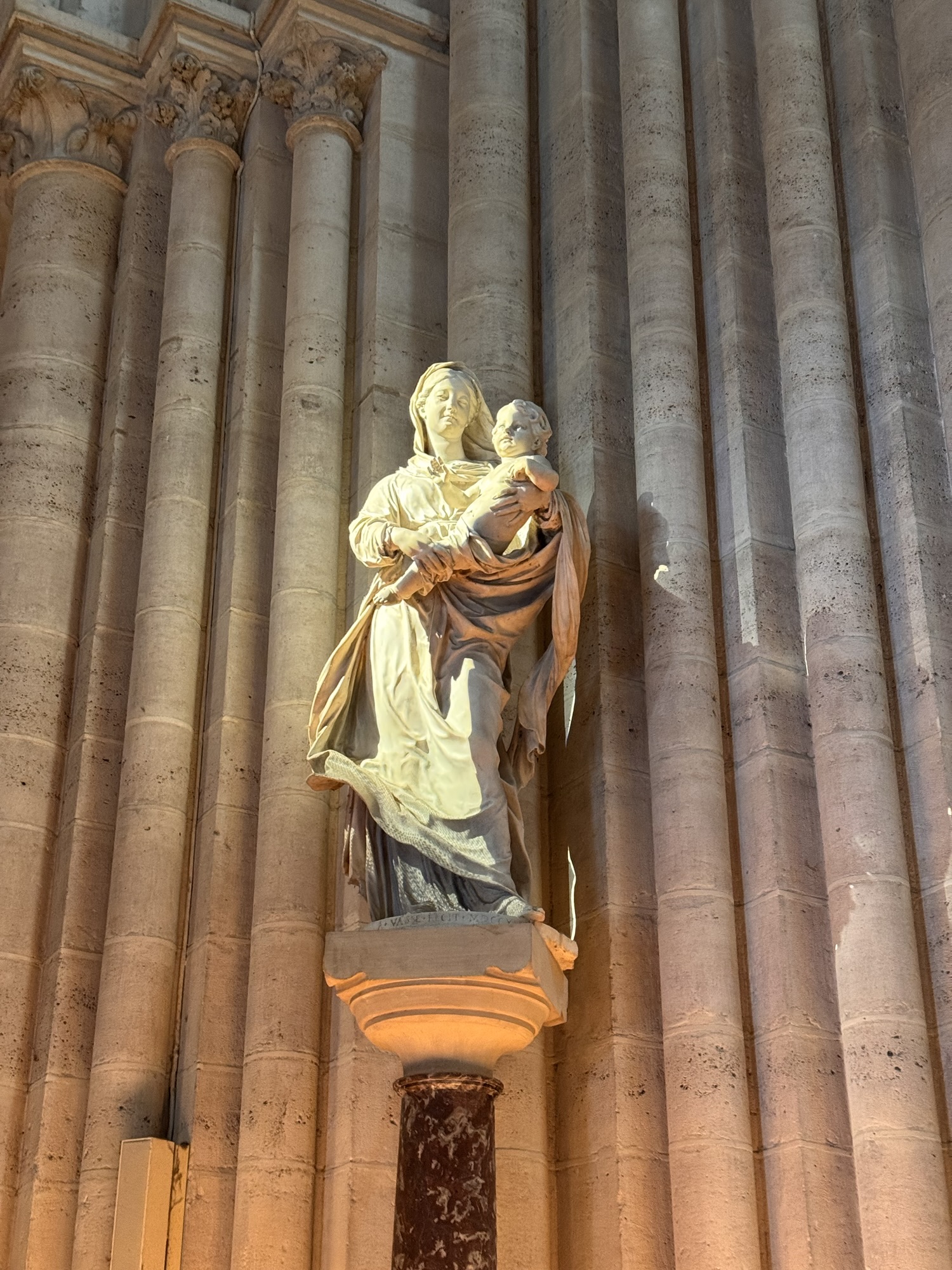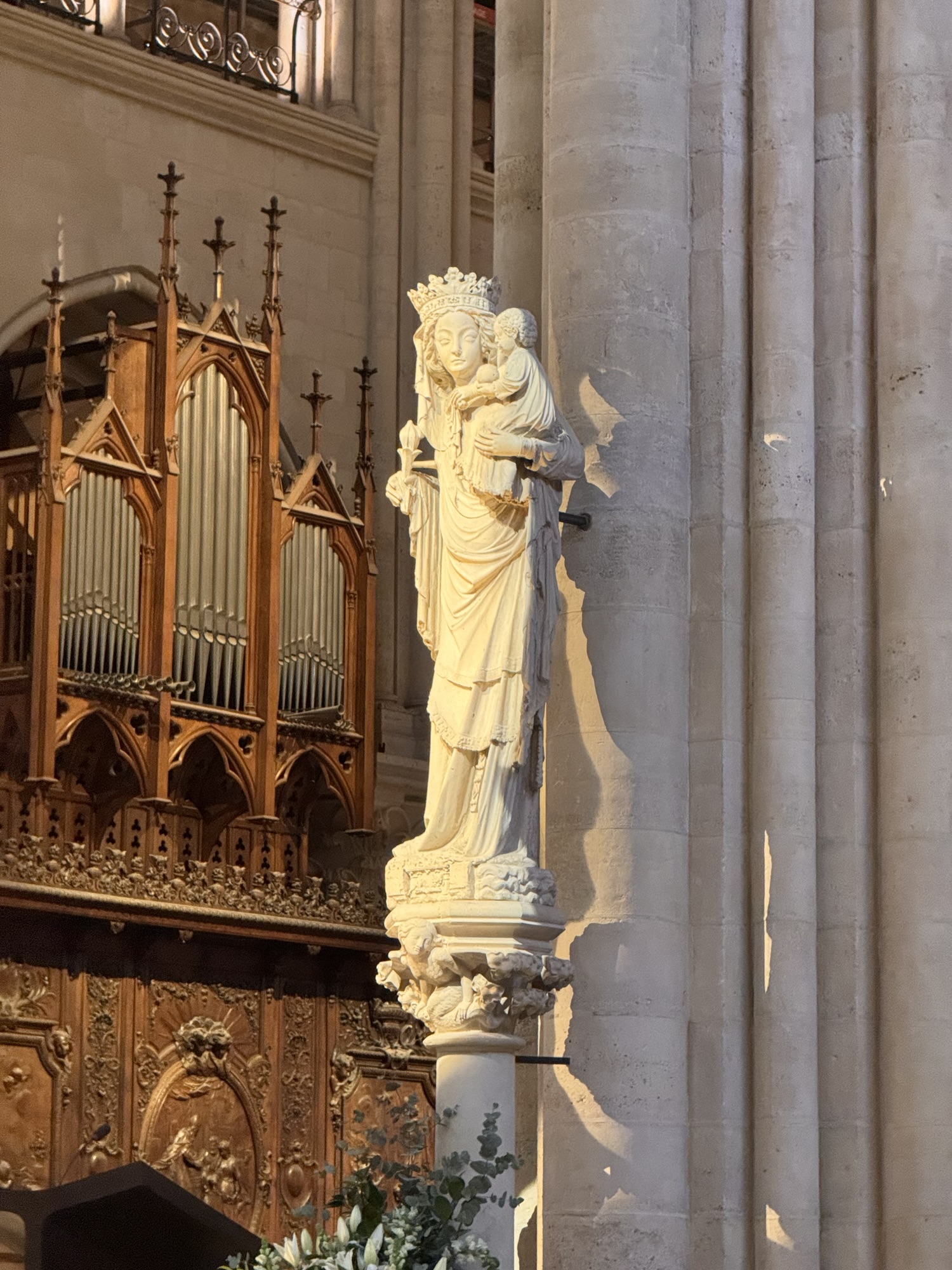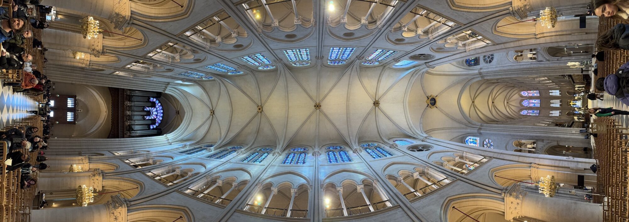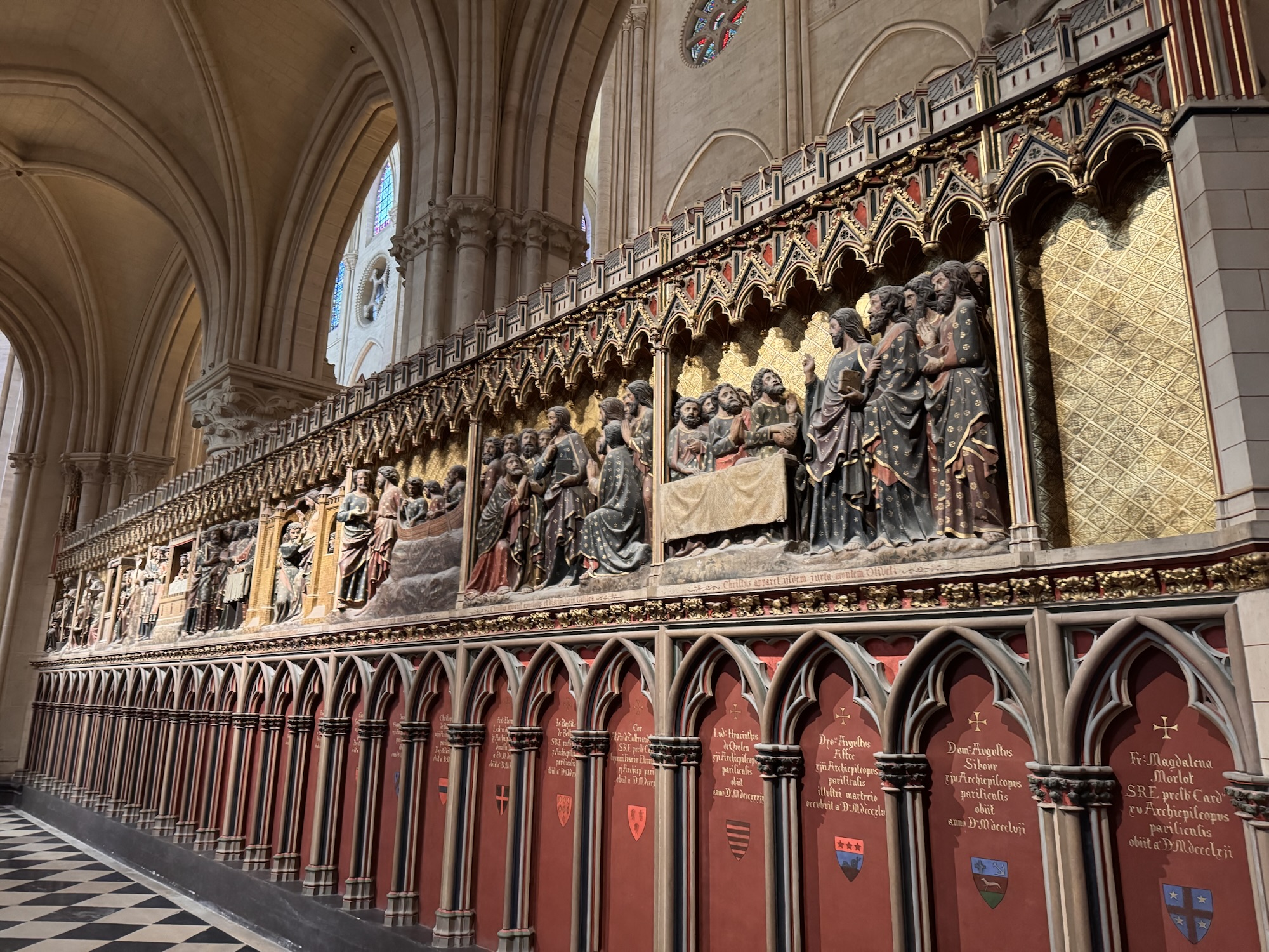 Am nächsten Tag (bewusst schreibe ich nicht Morgen) probiere ich einen weiteren Restauranttipp von Ramsi aus, auch lecker. Danach mein vorher eigentlich einziger feste Programmpunkt in Paris: die Cathédrale Notre-Dame de Paris, frisch restauriert nach dem Feuer. Obwohl erst seit 2024 offen, wirkt sie viel altmodischer als die anderen besuchten Sakralbauwerke auf meiner Reise. Es entstehen einige Fotos, schön ist sie schon. Neu gestaltet ist das Reliquar für die Dornenkrone, die Jesus bei der Kreuzigung getragen hat. DAS Original! Echt! Doppelschwör! Rund um die Kathedrale sind lauter Seitenkapellen, jeweils anderen Heiligen geweiht. Eine davon ist Saint Paul Chen geweiht, die Bilder mit chinesischen Schriftzeichen. Smart move – so fühlen sich die tausende Asiatischen Touristen auch gut aufgehoben. Die Kirche kostet keinen Eintritt, und an diesem kalten Januartag ist auch die Schlange bis man reinkommt sehr kurz.