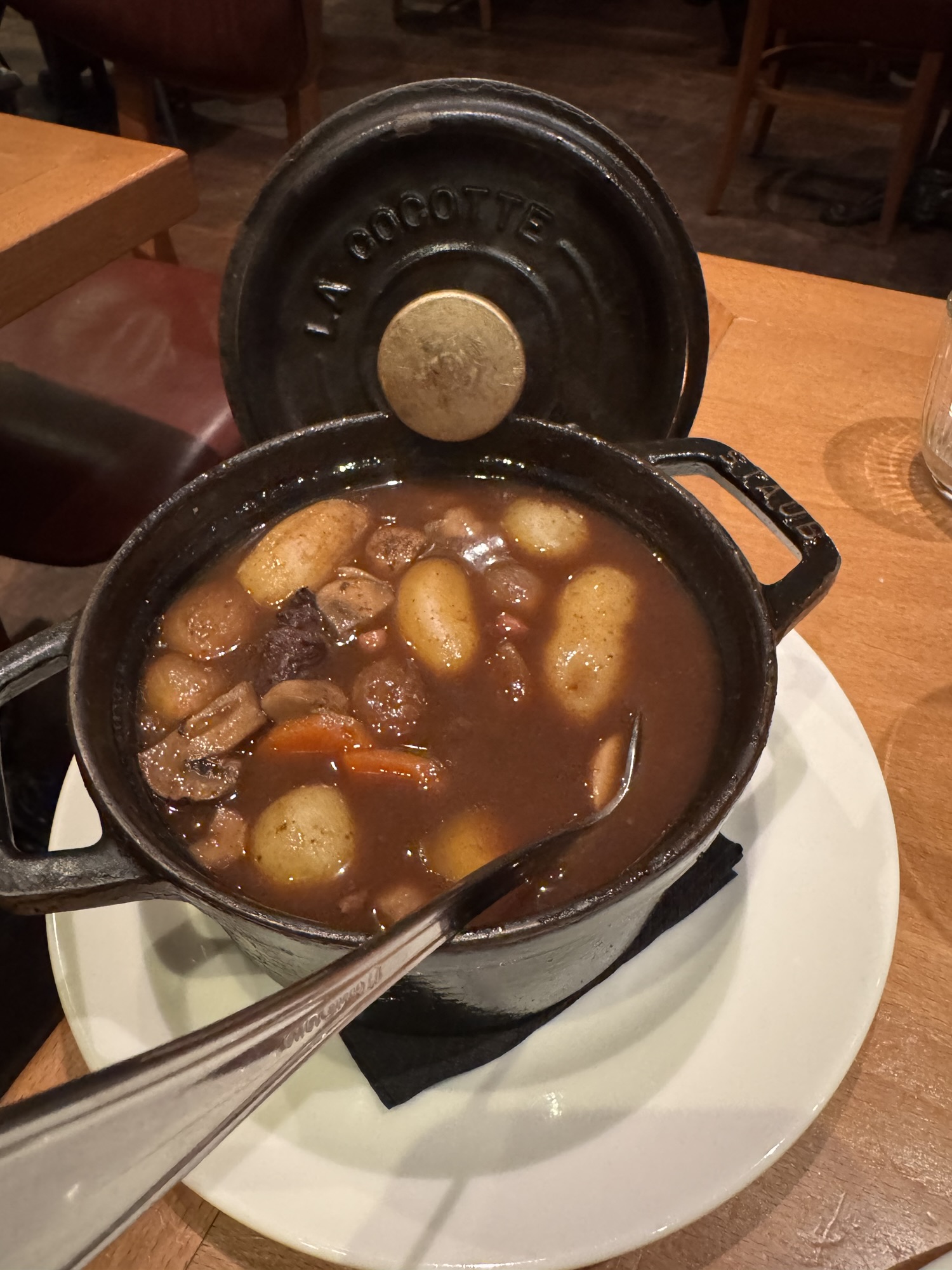 Ich organisiere mir eine Navigo Easy Karte mit 10 Fahrten für den Nahverkehr und nehme die Metro bis zu meinem Hotel im Viertel Le Marais, ein Tipp von Steffen. Le Marais ist belebt, gefühlt sind über 50% der Erdgeschossflächen in der Gegend gastronomisch genutzt. Einige Zeit vorher waren Karin und Ramsi auch in Paris, haben auch in dem Viertel gewohnt und mir einige Tipps gegeben. Am Abend probiere ich im „Au Bourguignon Du Marais“ eine französiche Zwiebelsuppe und ein Boeuf Bourguignon. Leckeres Essen, freundlich-kompetentes Personal, doch zum Ende des Abends lügt mich der Kellner ganz frech an: ich spräche gutes Französisch, meint er.