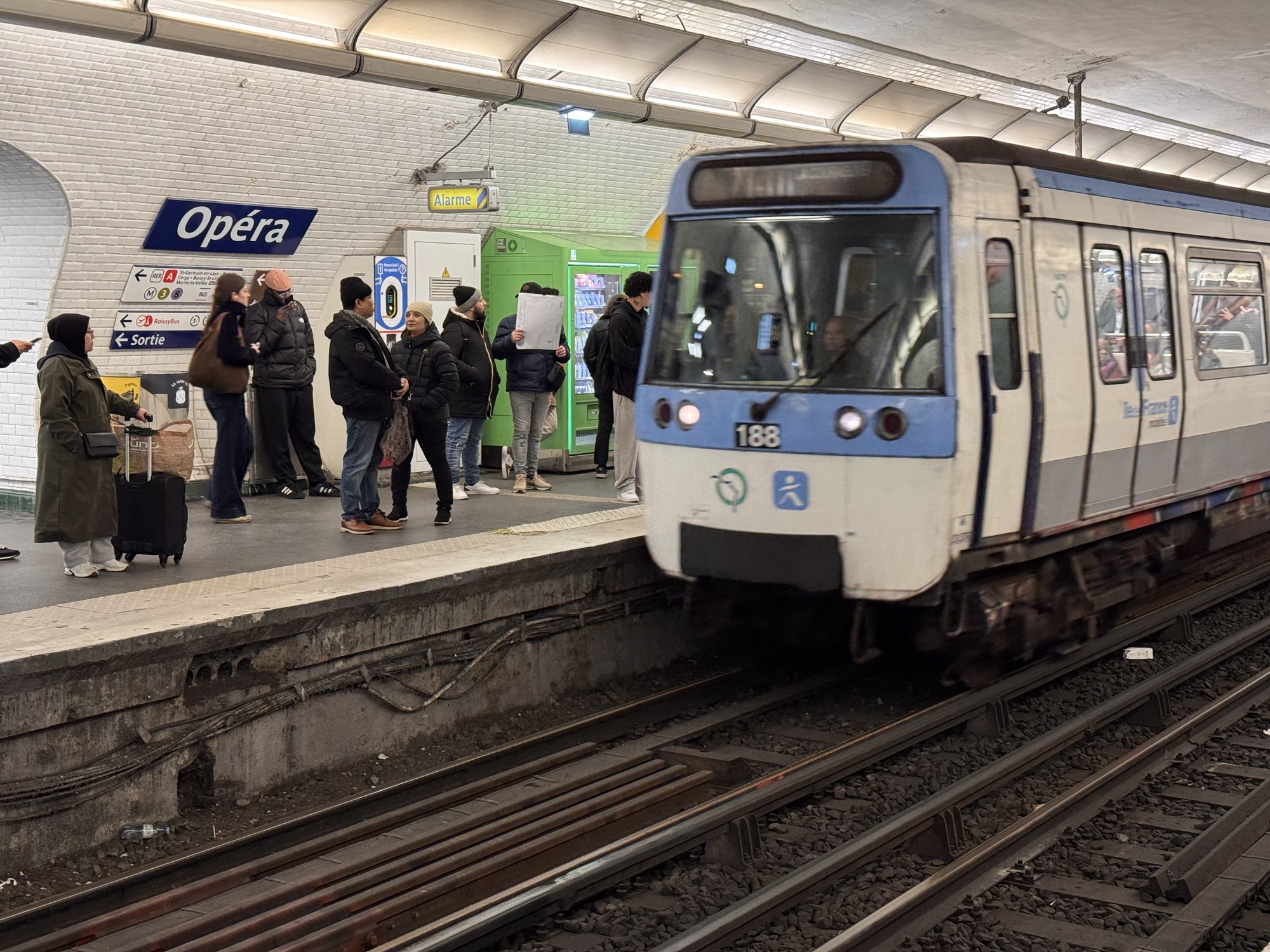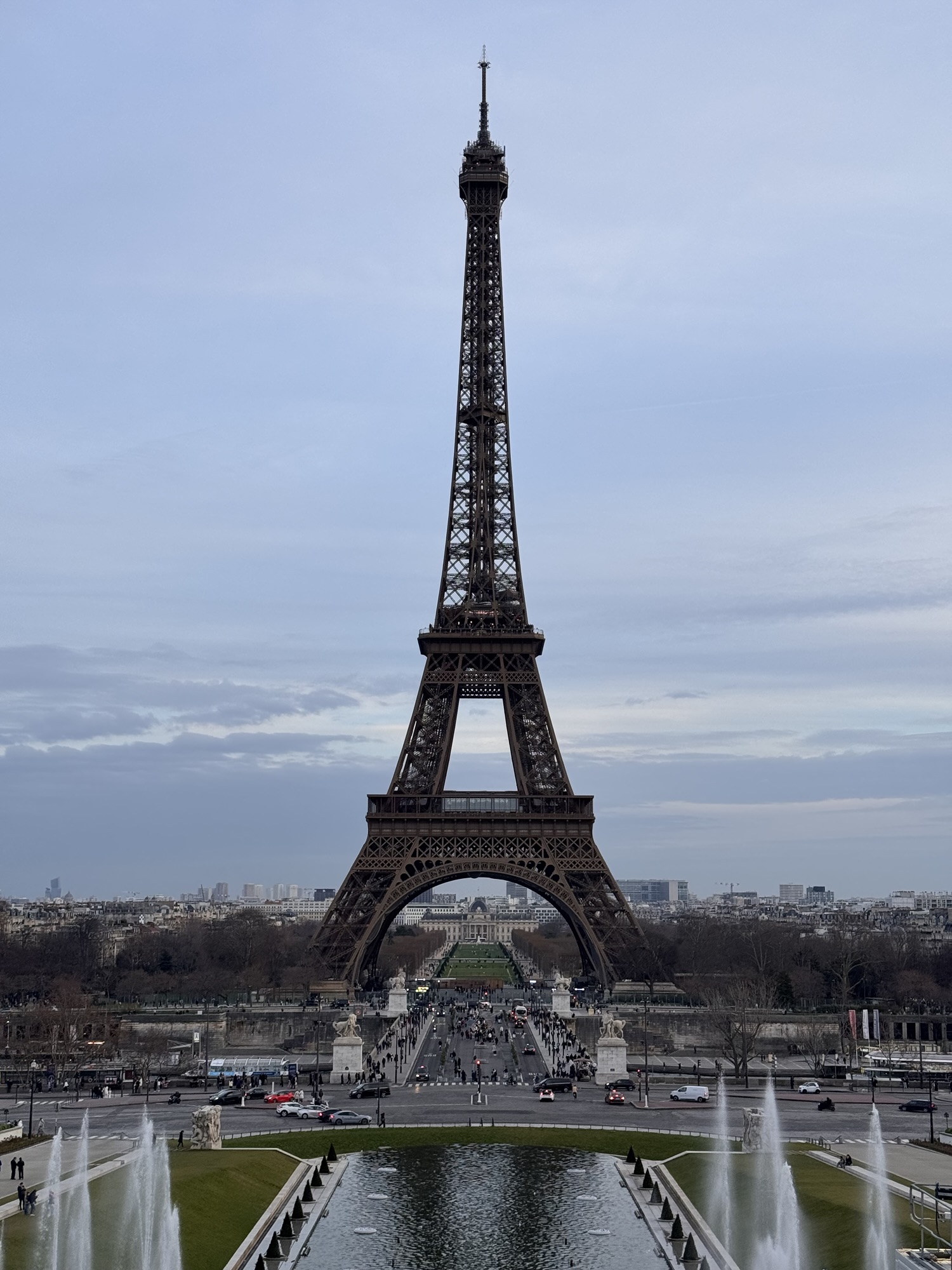 Und nu? Dass ich nicht genug Zeit hab, um mir viel wirklich anzusehen ist klar, also vielleicht wenigstens meine Leser mit eigenen Bilder vom Eiffelturm und so erfreuen. Die wenige Sonne steht immerhin gut für Fotos vom Trocadéro aus. Und cool, es gibt einen Bus dorthin, also a bisserl Stadtrundfahrt. Ich halte meine Navigo Easy Karte an den Leser, und der brummt böse. Hallo? Nochmal. Brumm. Aber der Busfahrer ist freundlich und erklärt: Ich habe wahrscheinlich nur Tickets für Metro gekauft, es gibt aber auch noch welche für 20 Cent weniger, die nur in Bus und Tram funktionieren. Mit einer App könnte ich eine solche Busfahrkarte per ‚telechargement‘ erwerben, ich darf auch gerne derweil im Bus bleiben und weiterfahren. Again what learned.